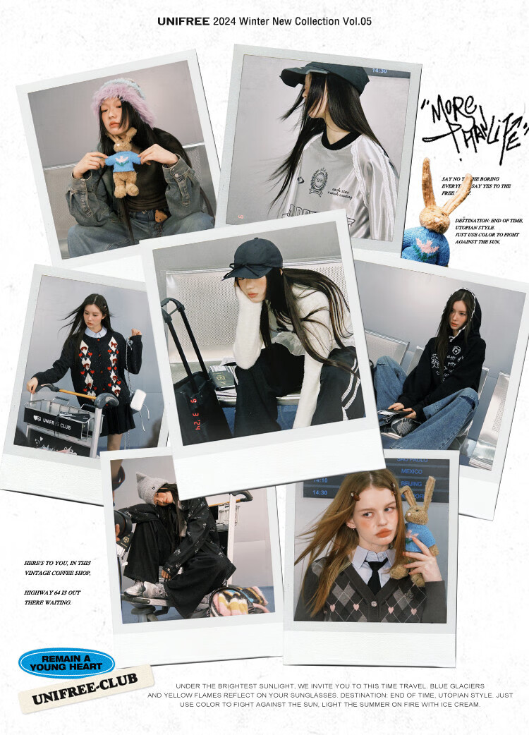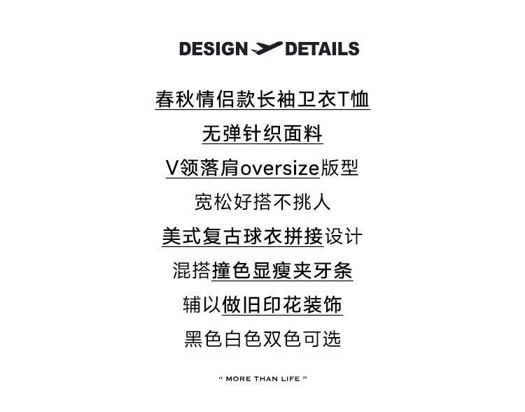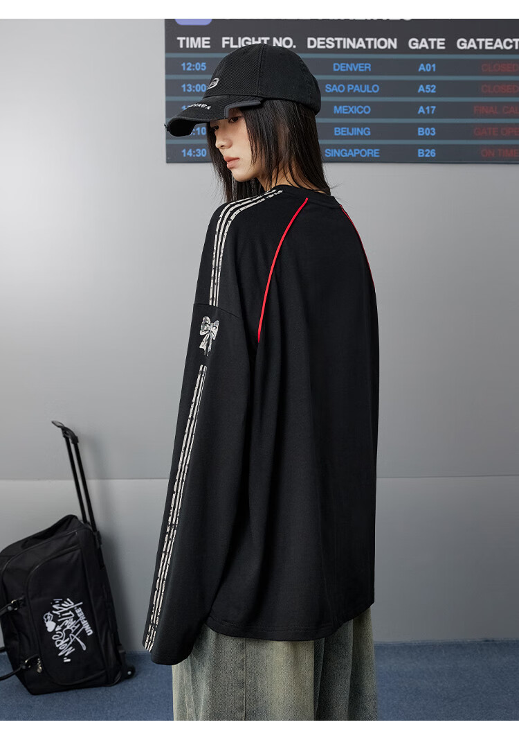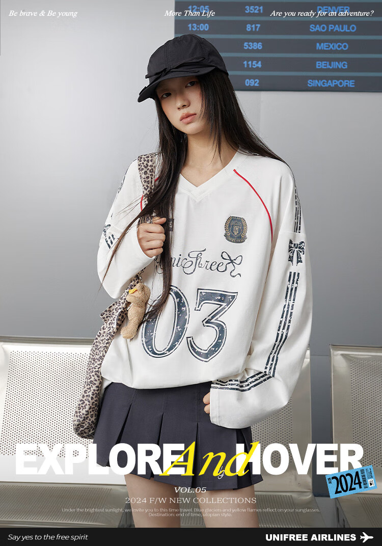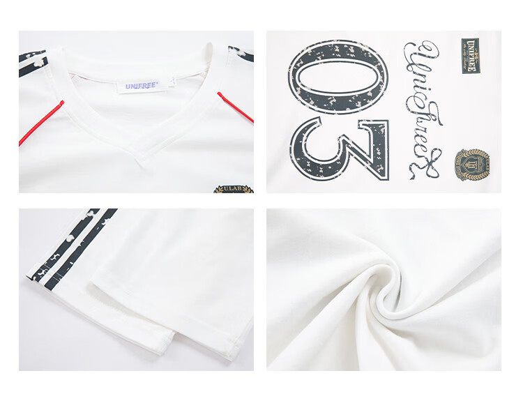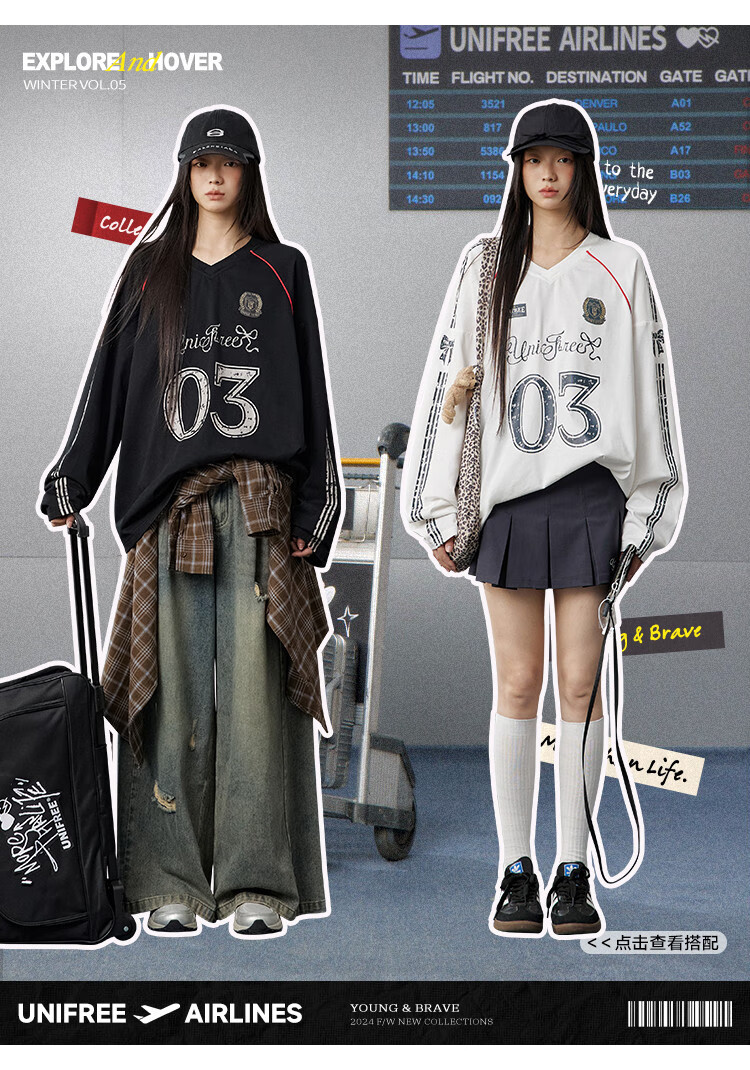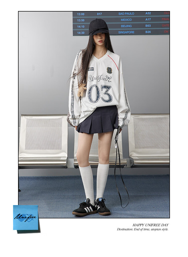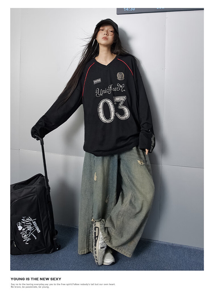 UNIFREE celebrity style American V-neck long-sleeved T-shirt trendy brand sports off-shoulder loose jersey white M