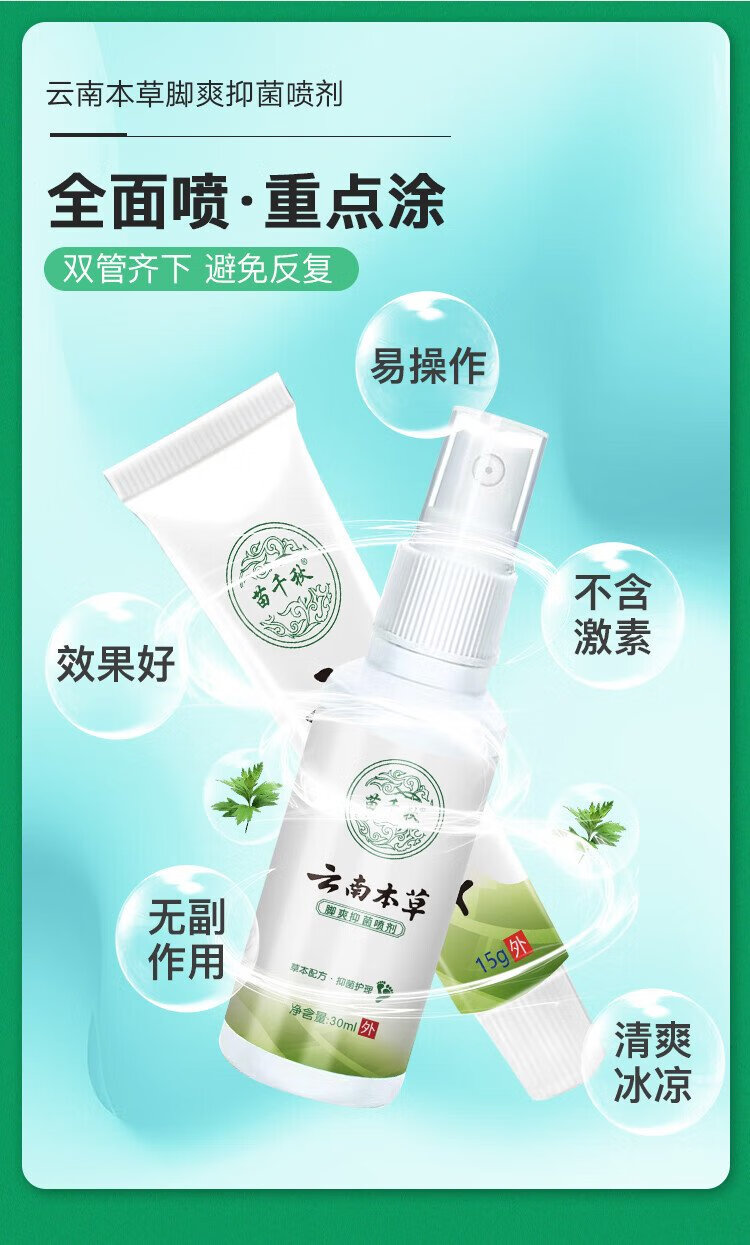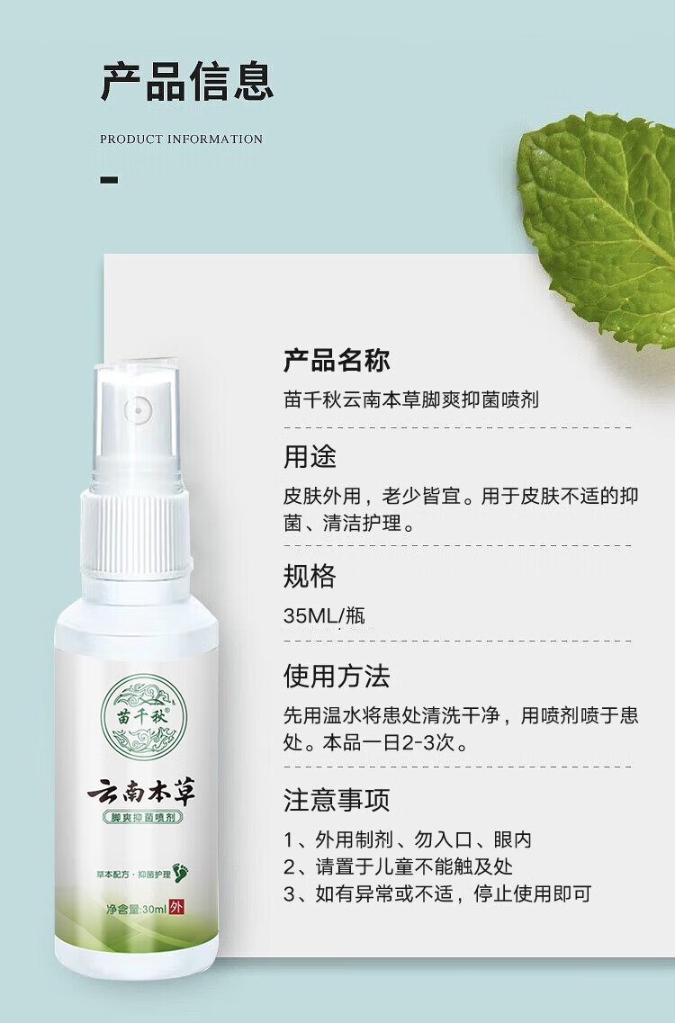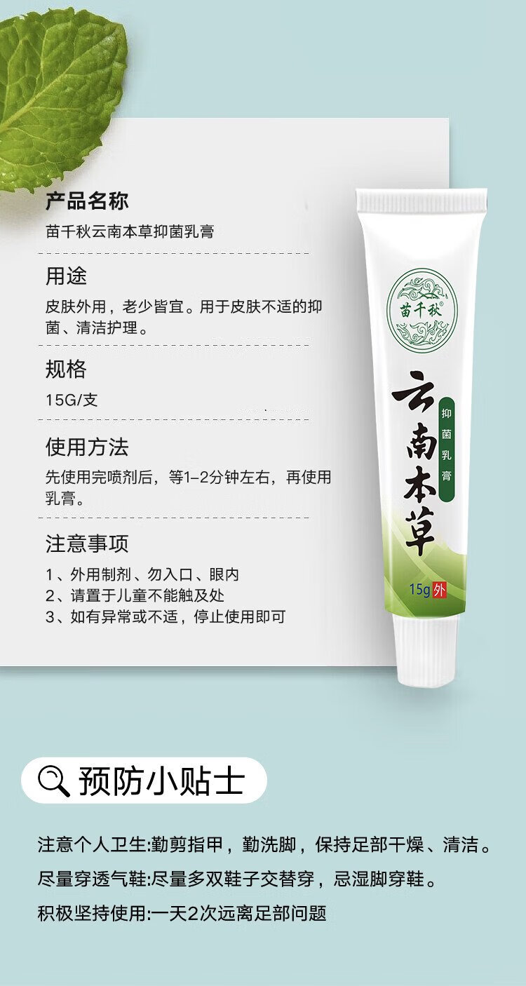 Miao Qianqiu Yunnan Herbal Athlete's Foot Spray Smelly Feet Itchy Peeling Peeling and Rotten Feet Blisters Fungi Antibacterial Spray + Cream
