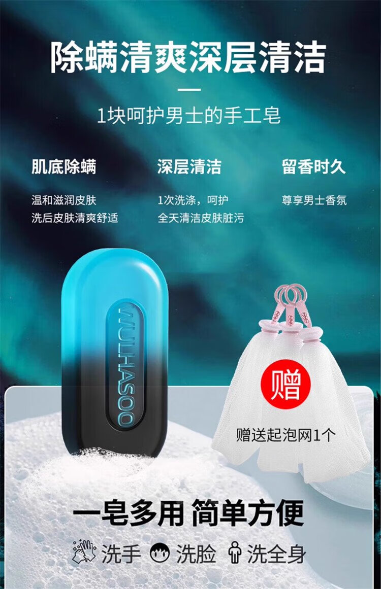 Yongcai Cologne Men's Perfume Soap 100g Anti-mite and Fragrant Oil Control Soap Bath Shampoo and Face Wash Three-in-One Soap