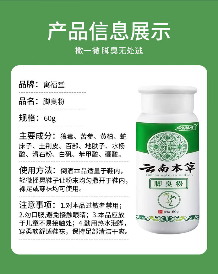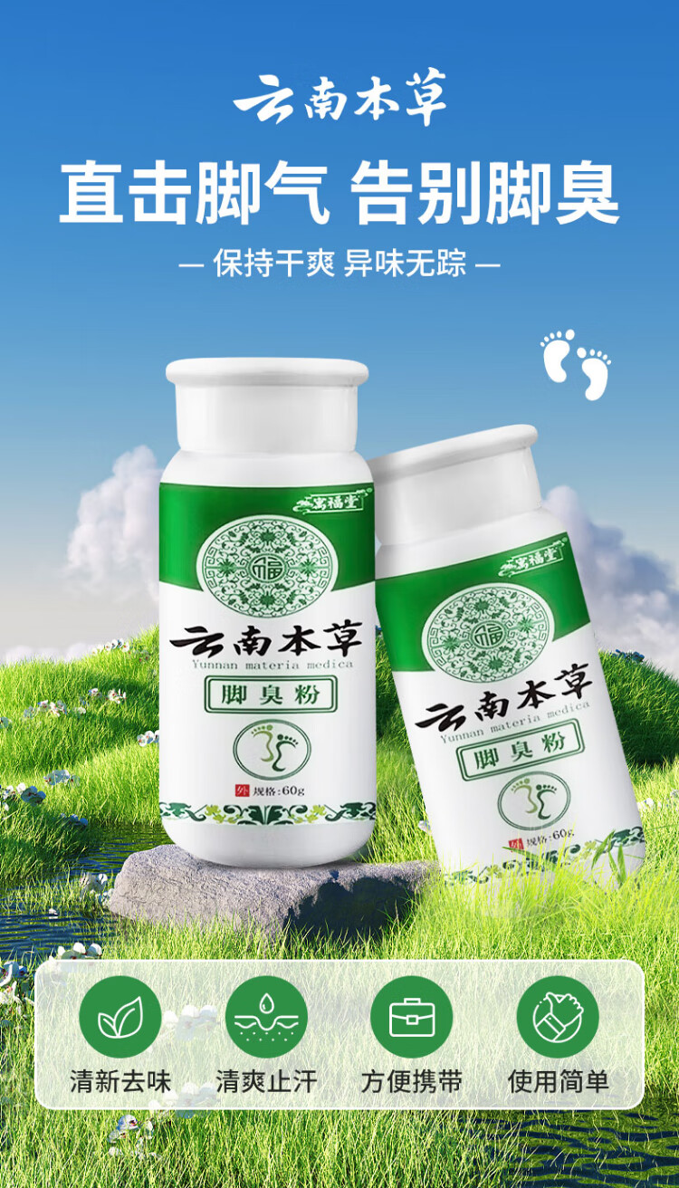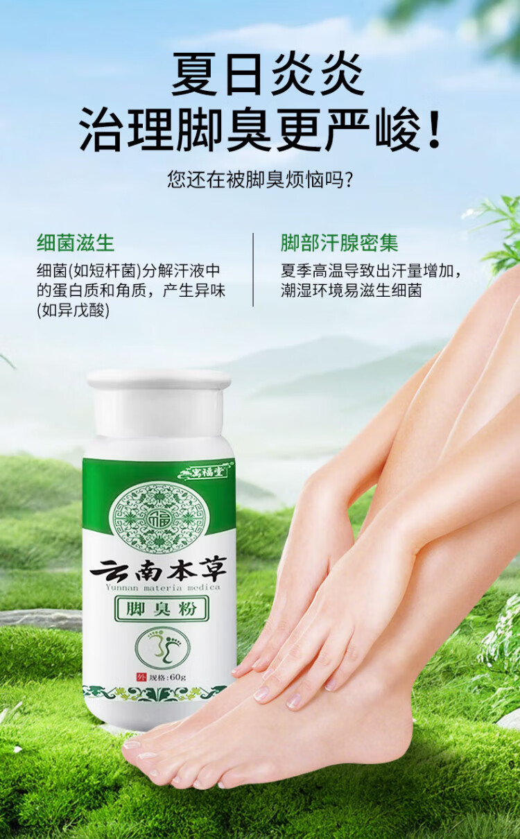 Yunnan herbal foot odor powder 60g, sweaty feet and socks, anti-itching, peeling and drying agent for shoe cabinets, smelly socks and odor