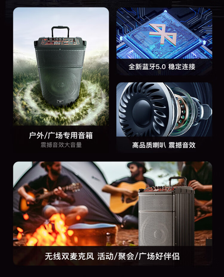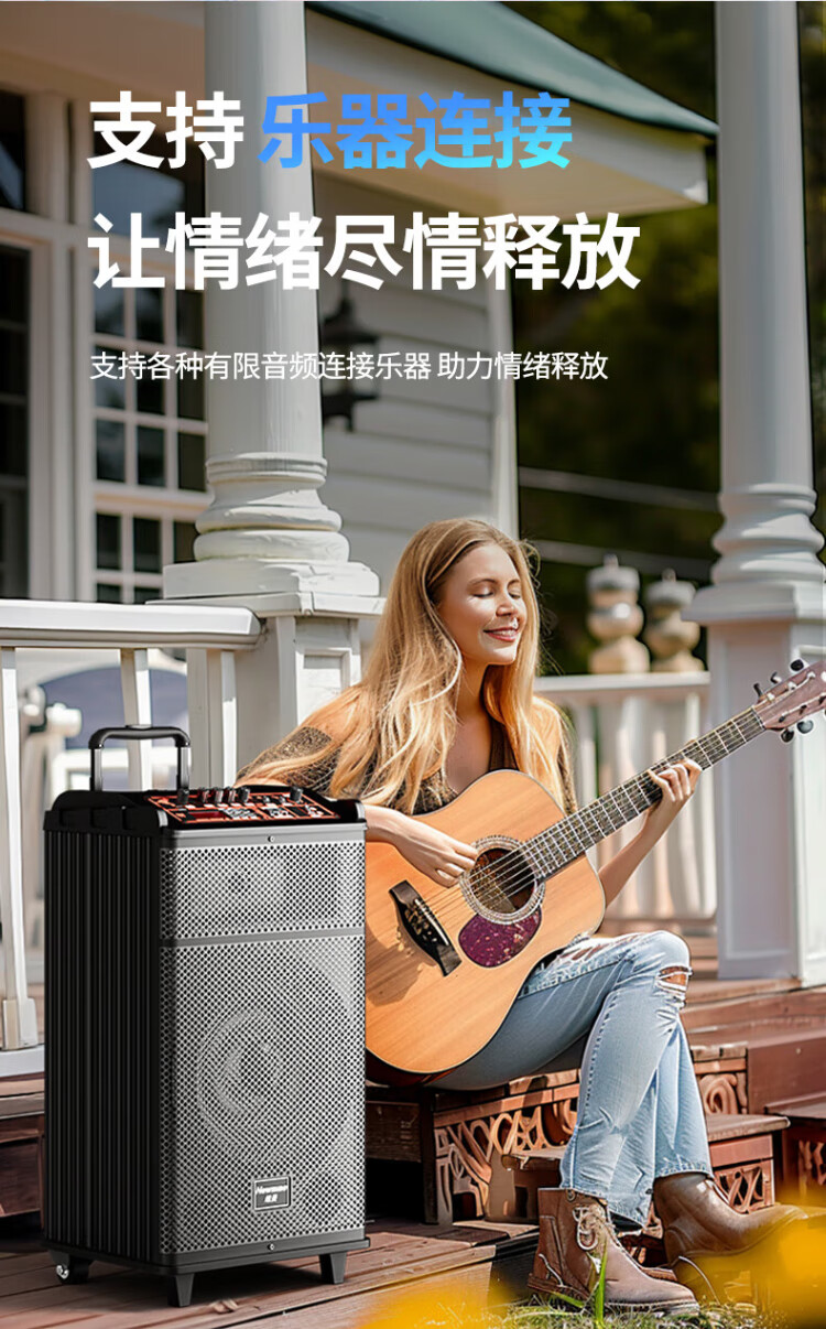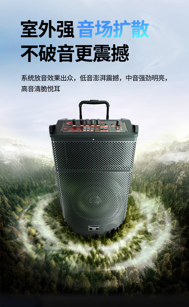 Newman N520 portable square dance high-power bass outdoor karaoke Bluetooth pull rod electric acoustic guitar folk musical instrument speaker amplifier stall speaker dual microphone adapter 12 inches