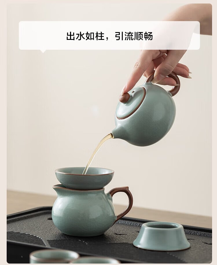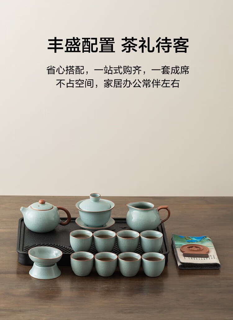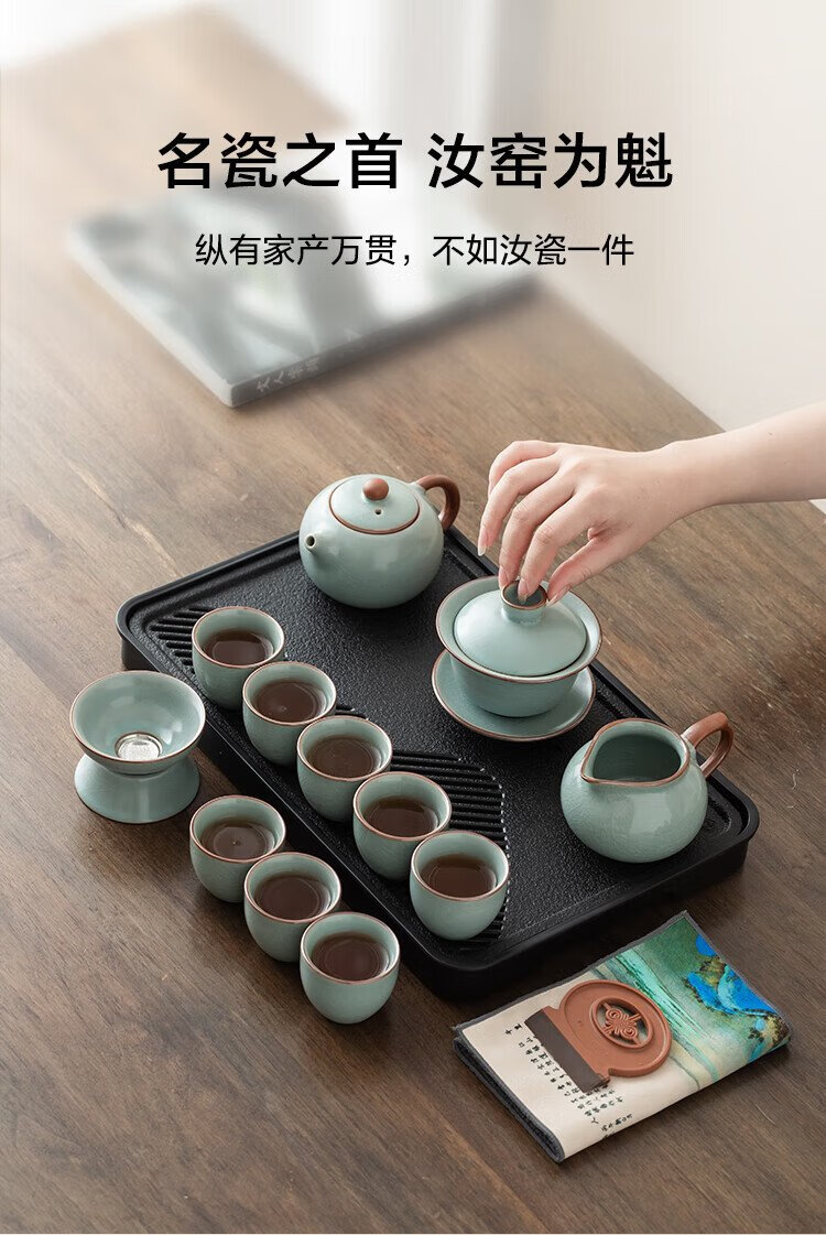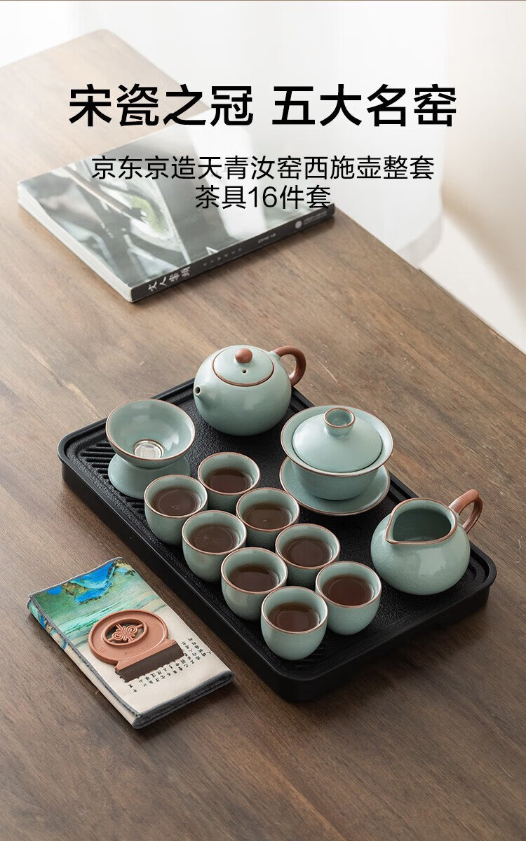 Made in Tokyo, complete tea set, Kung Fu tea set with tea tray, teapot, tea cup, Tianqing Ru Kiln Xi Shi teapot, 16 pieces