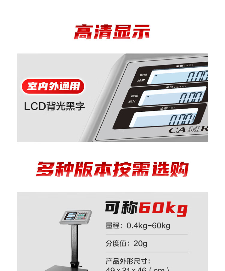Xiangshan CAMRY electronic scale commercial electronic platform scale high-precision vegetable scale counting scale pricing carbon steel 150kg/50g LCD black characters