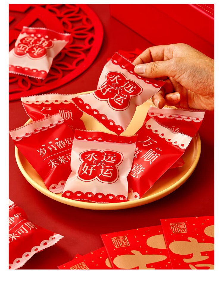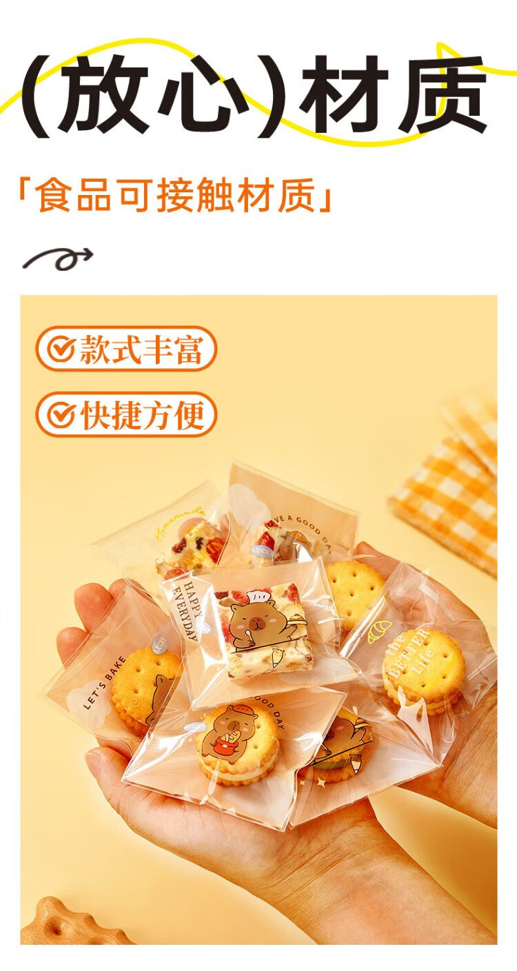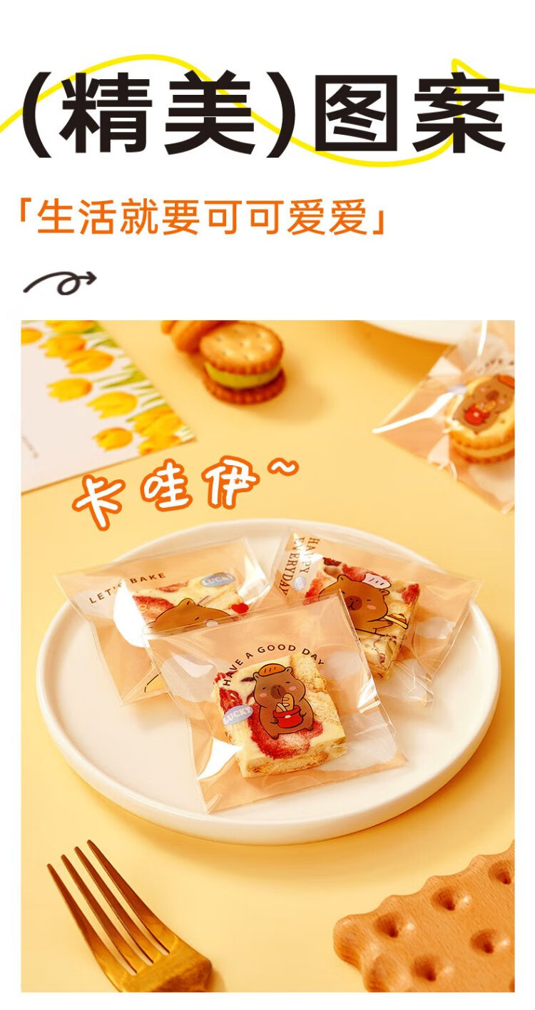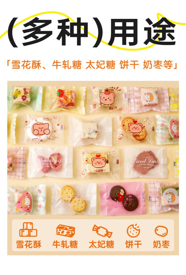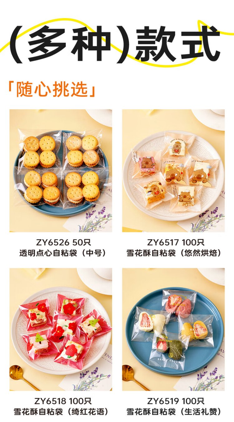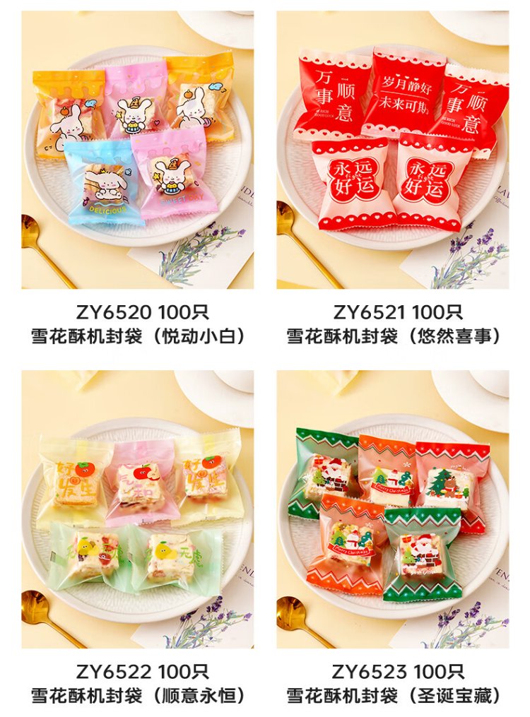Zhanyi biscuit self-adhesive bags 100 pieces, cookies, candies, mung bean cake, osmanthus cake, snack packaging, praise of life