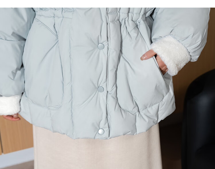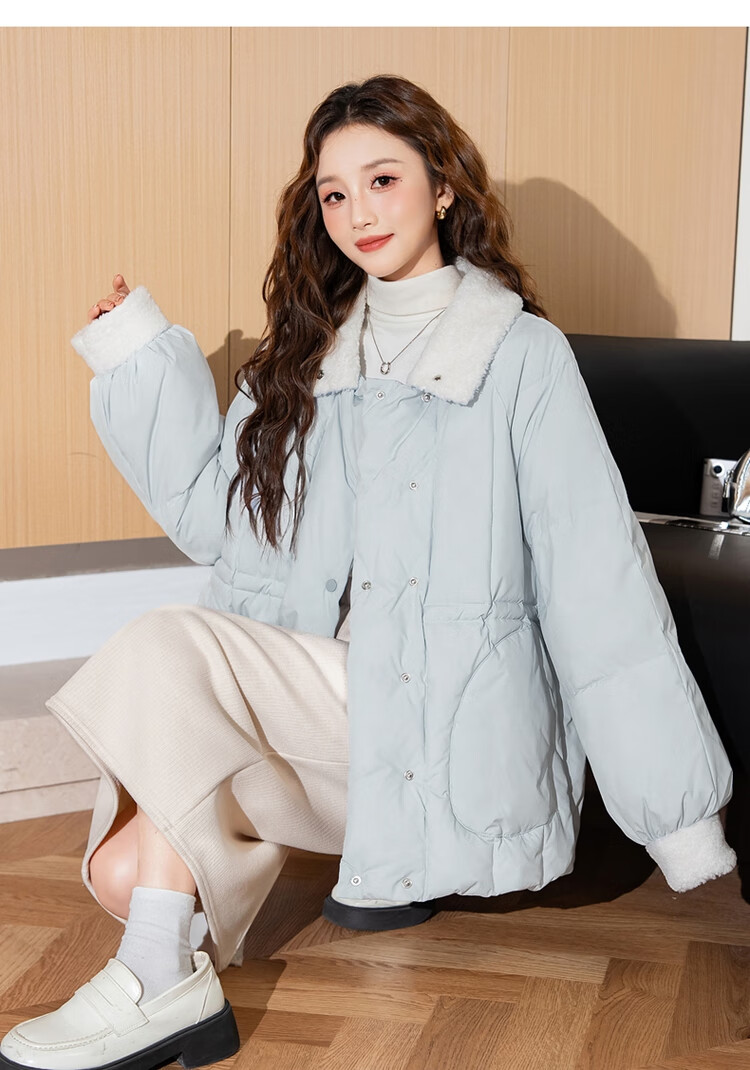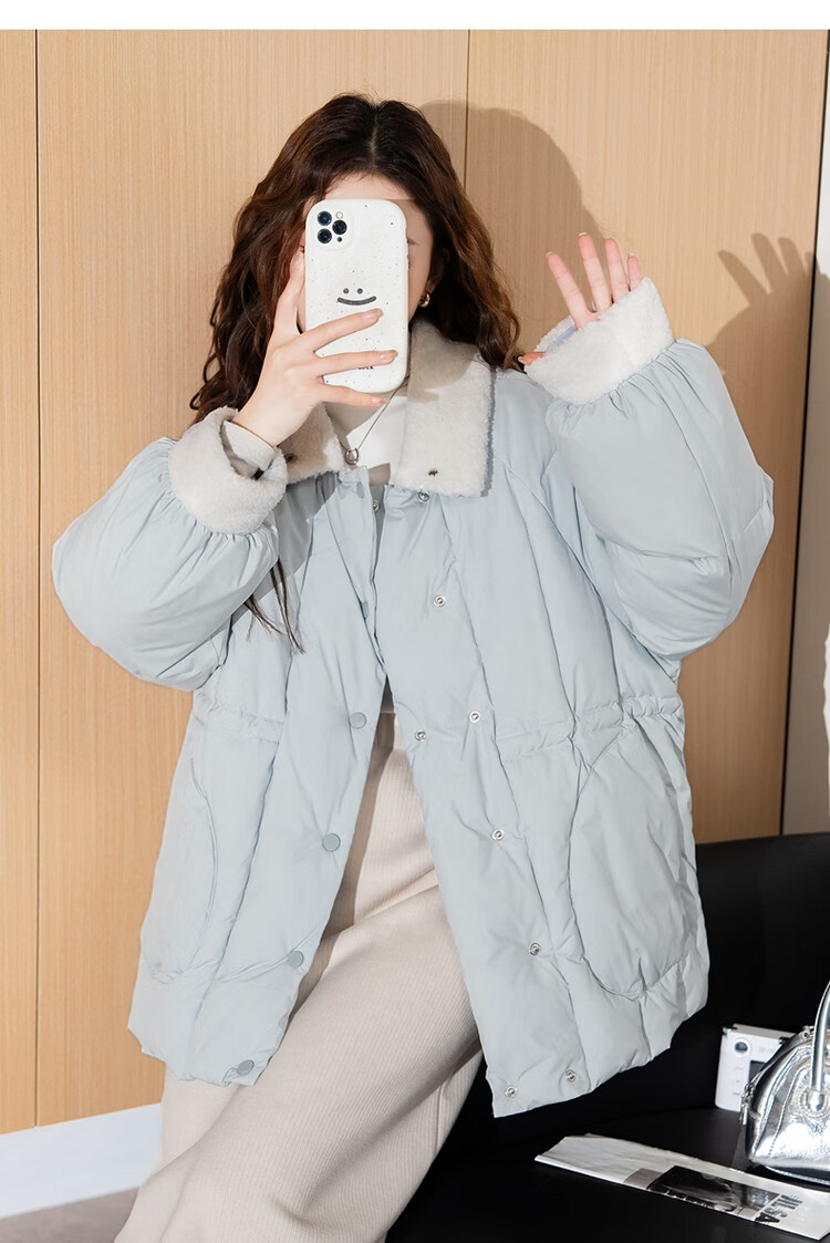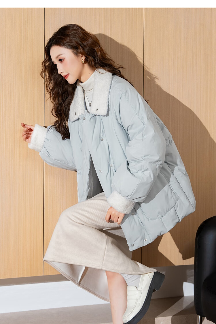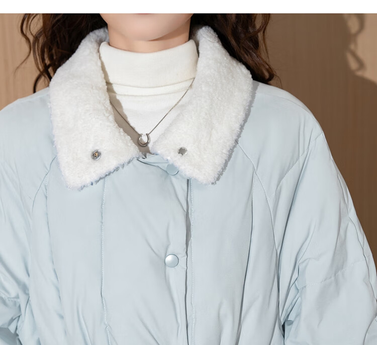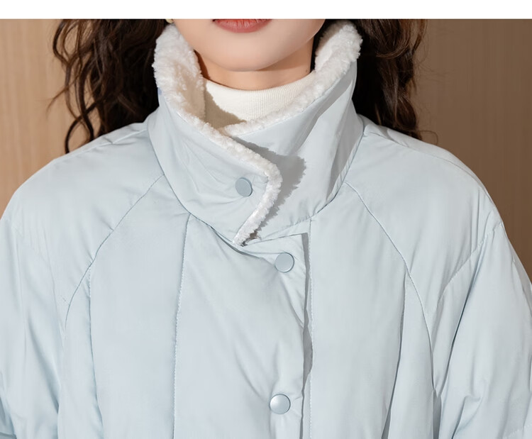 TonLion 2025 Women's Lapel Spliced Warm Padded Jacket for Little People Bay Blue L