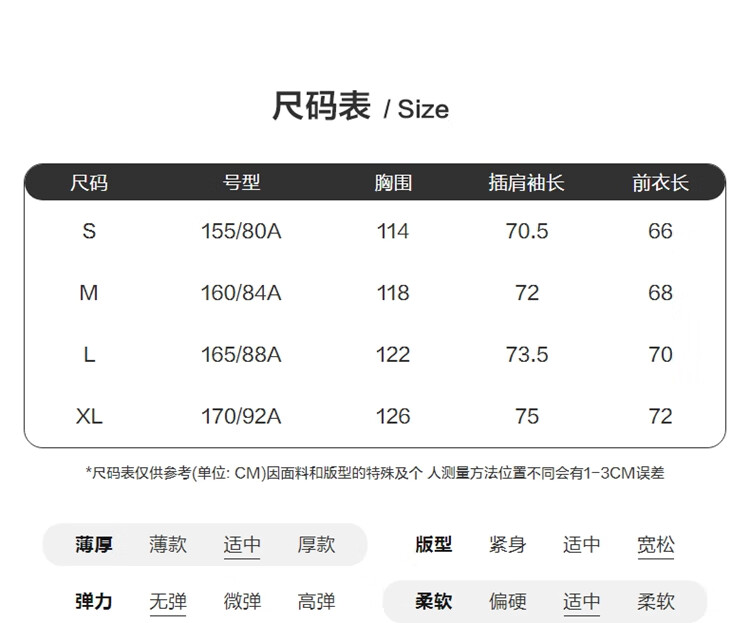 China (cm) 160-165/84-86 165-170 / 88-90 167-172 / 92-96 168-173 / 98-102 170-176 / 106-110