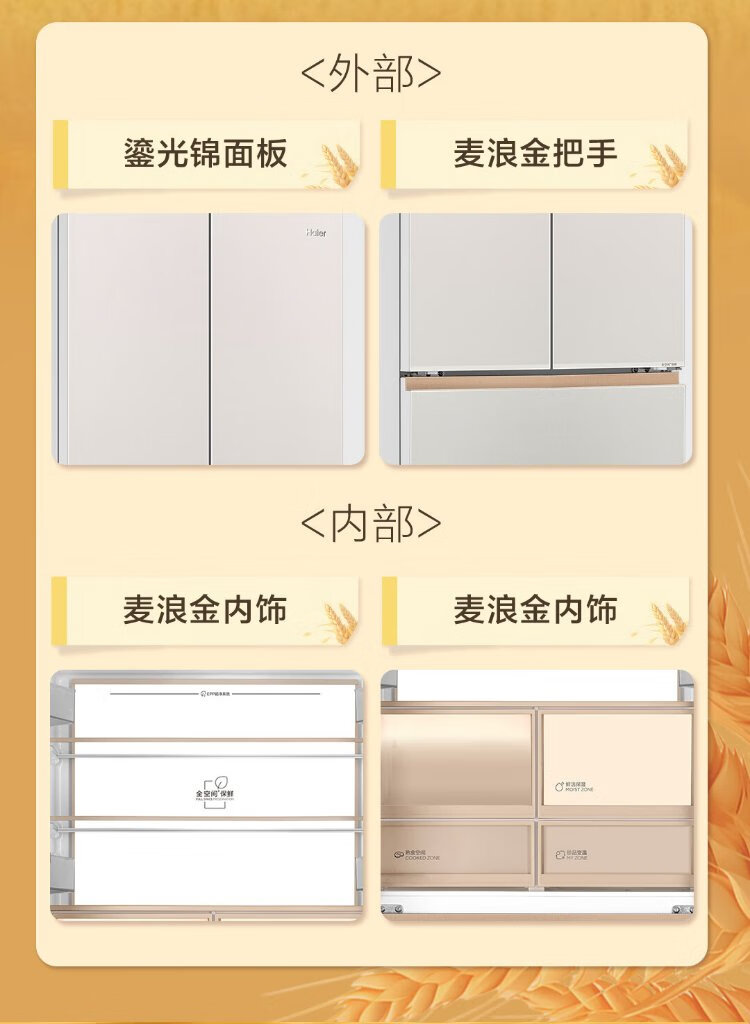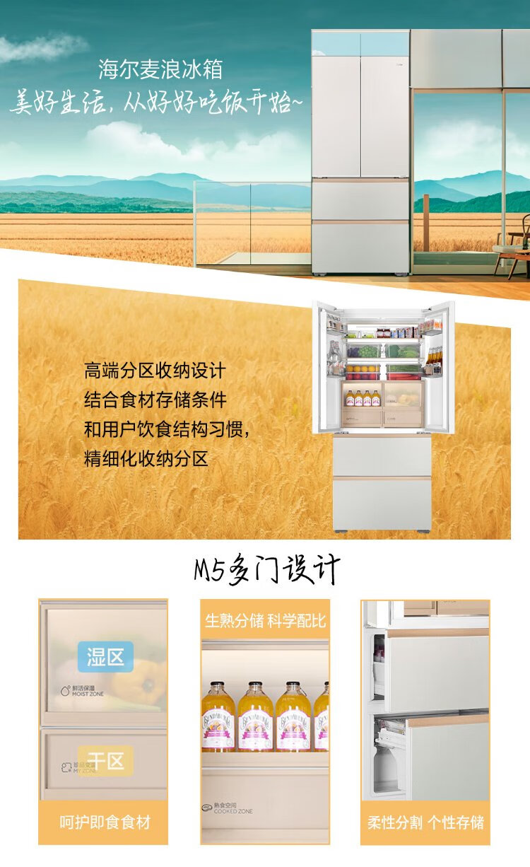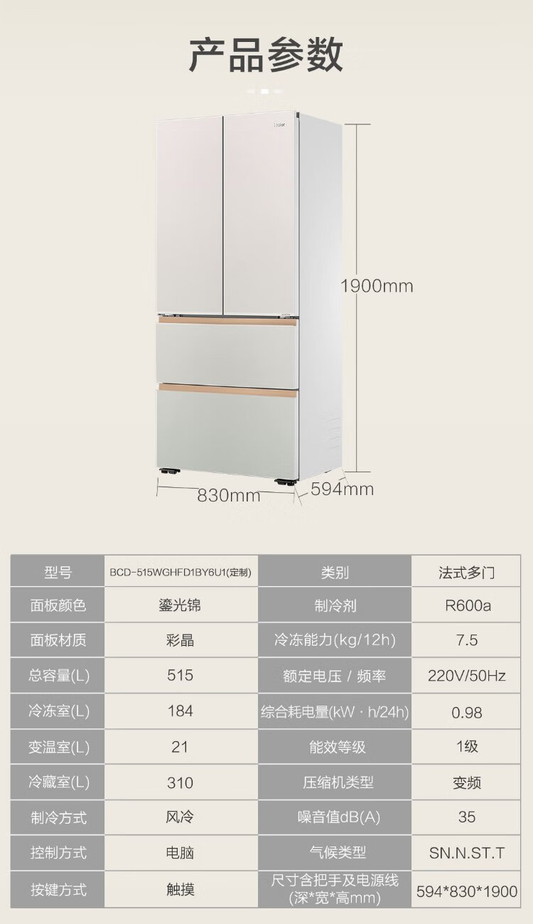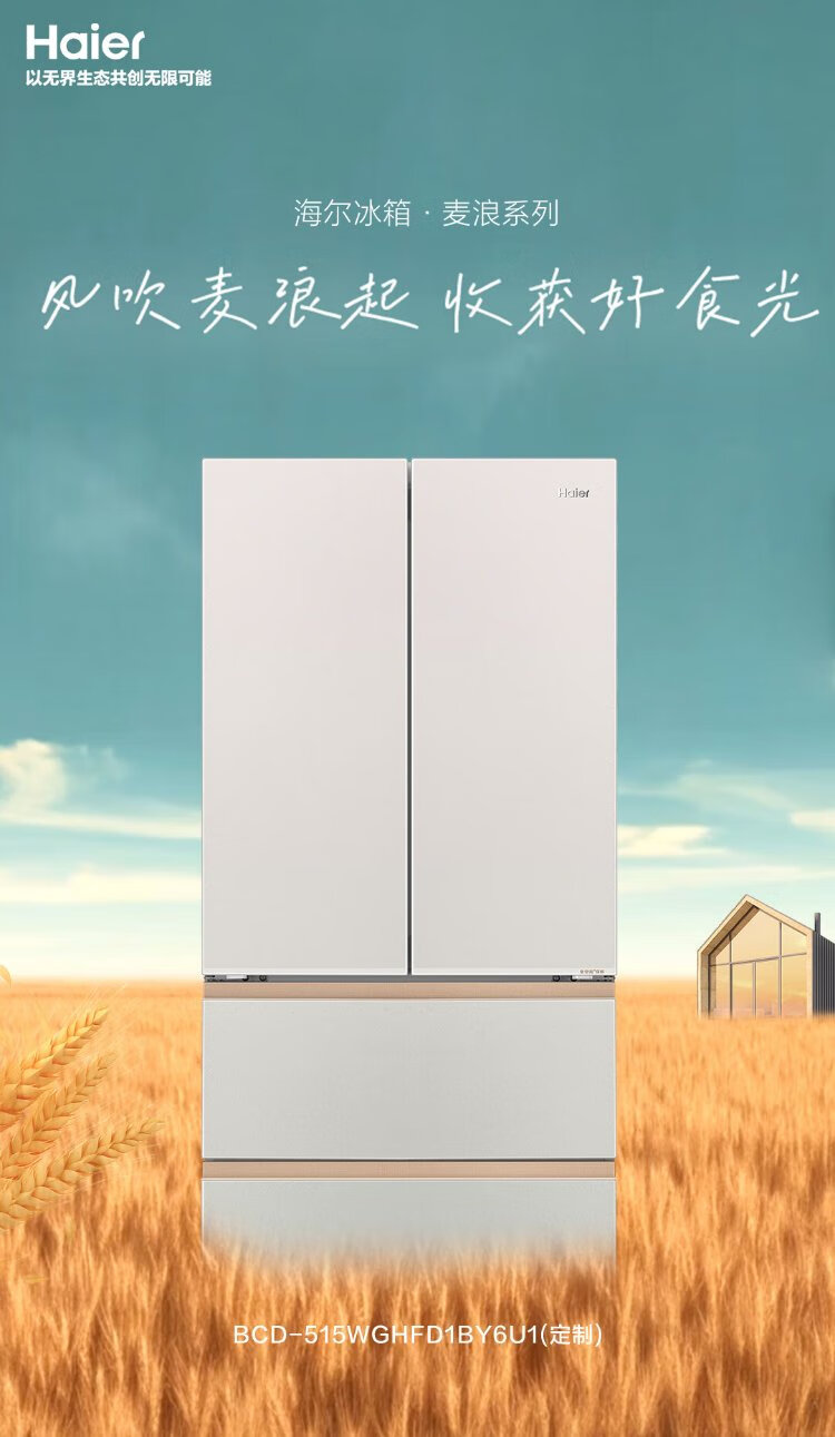 Haier Mailang 515L French door refrigerator ultra-thin zero-embedded full-space fresh-keeping technology EPP ultra-clean system BCD-515WGHFD1BY6U1 (customized) national subsidy