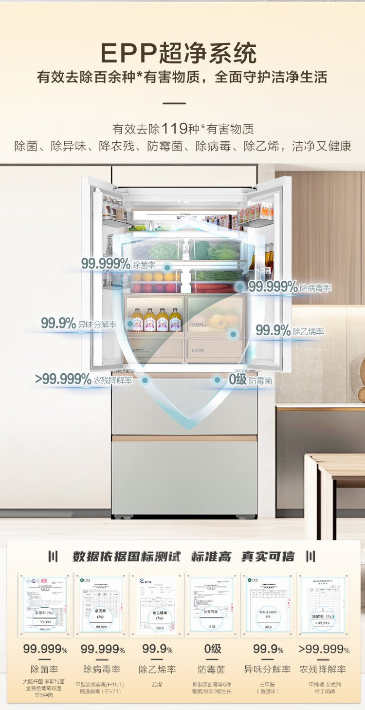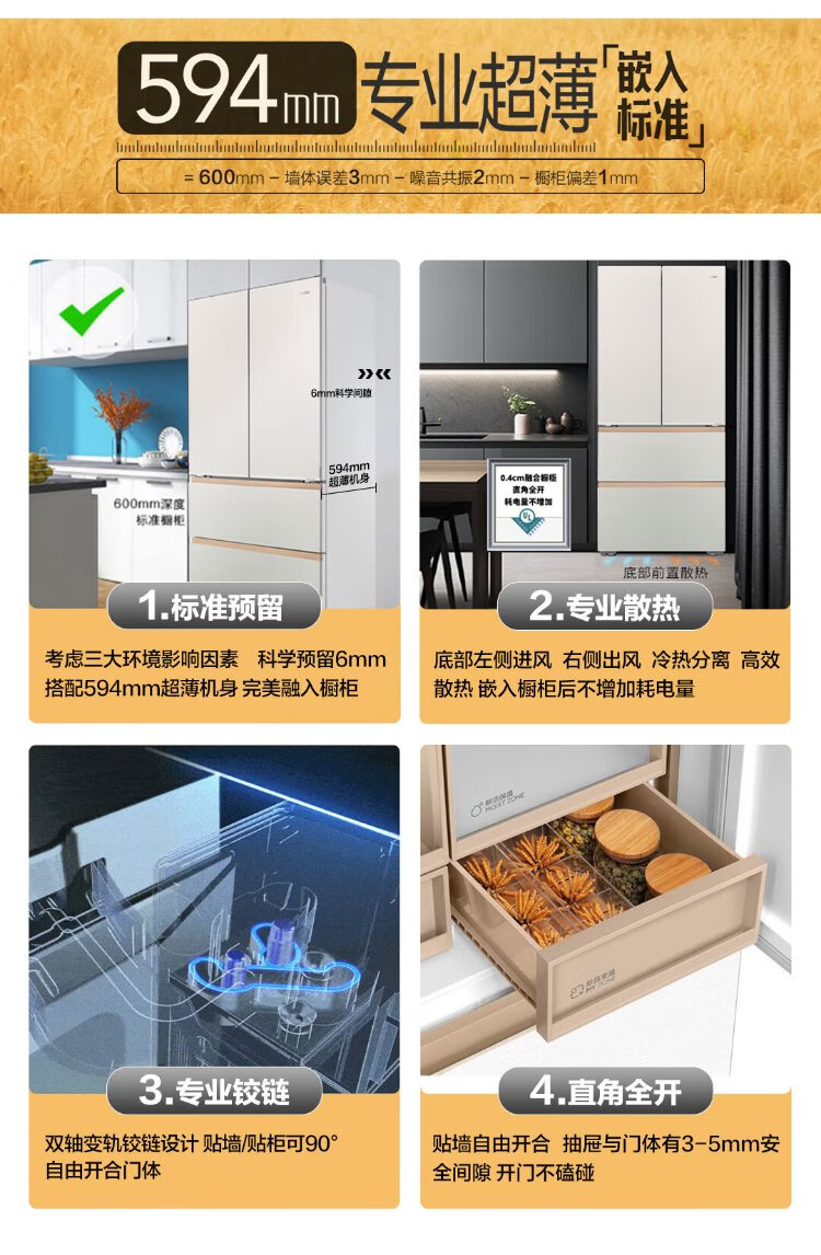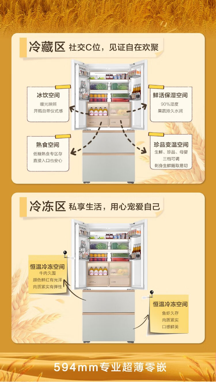 Haier Mailang 515L French door refrigerator ultra-thin zero-embedded full-space fresh-keeping technology EPP ultra-clean system BCD-515WGHFD1BY6U1 (customized) national subsidy