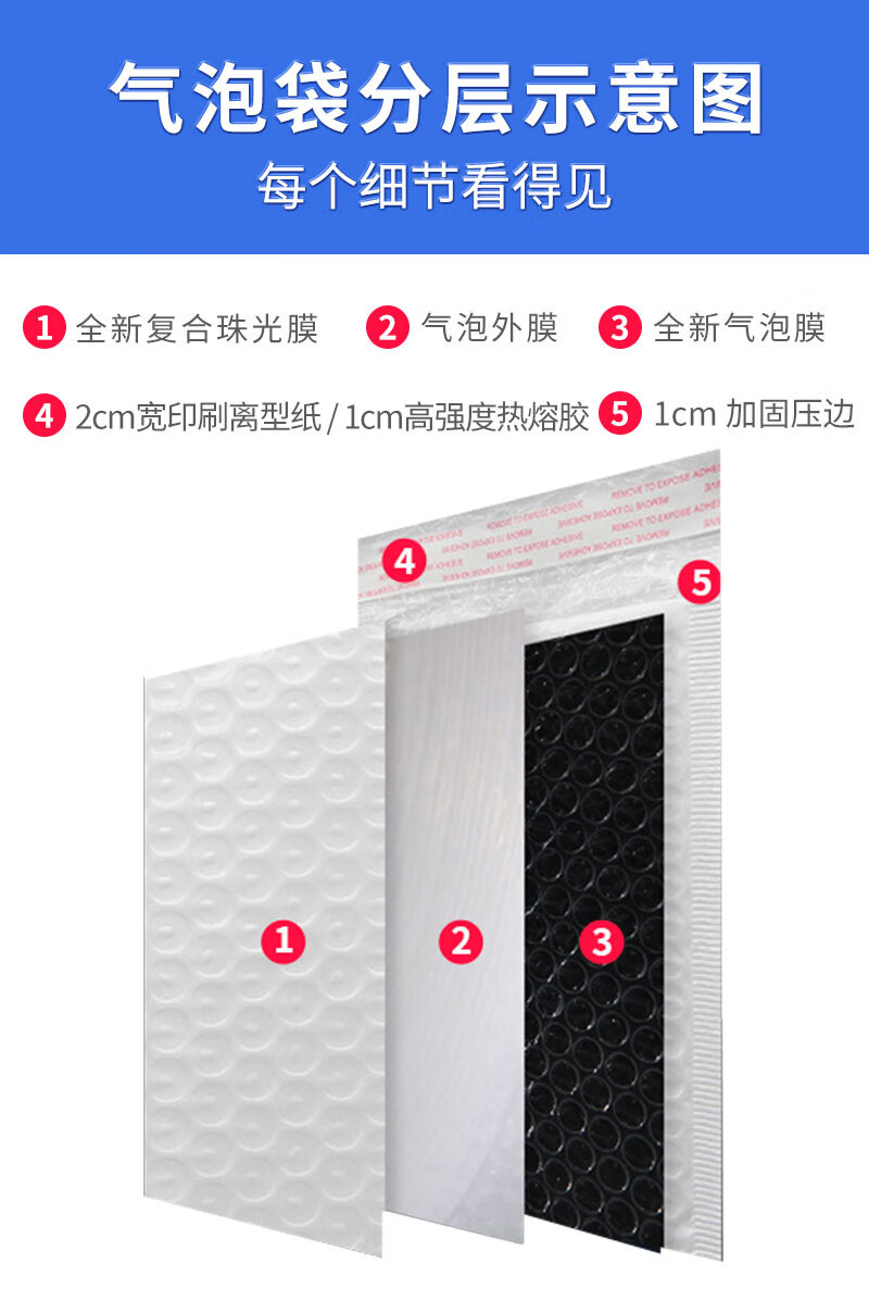 Jiuqiangu bubble bag packaging express bag bubble bag envelope bag shockproof clothing book packaging bag composite pearlescent film 15*25cm 50 pieces
