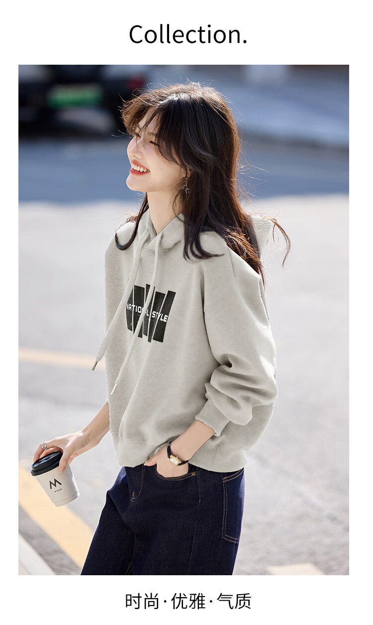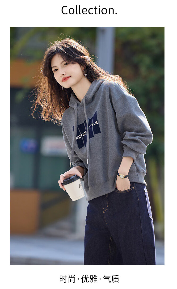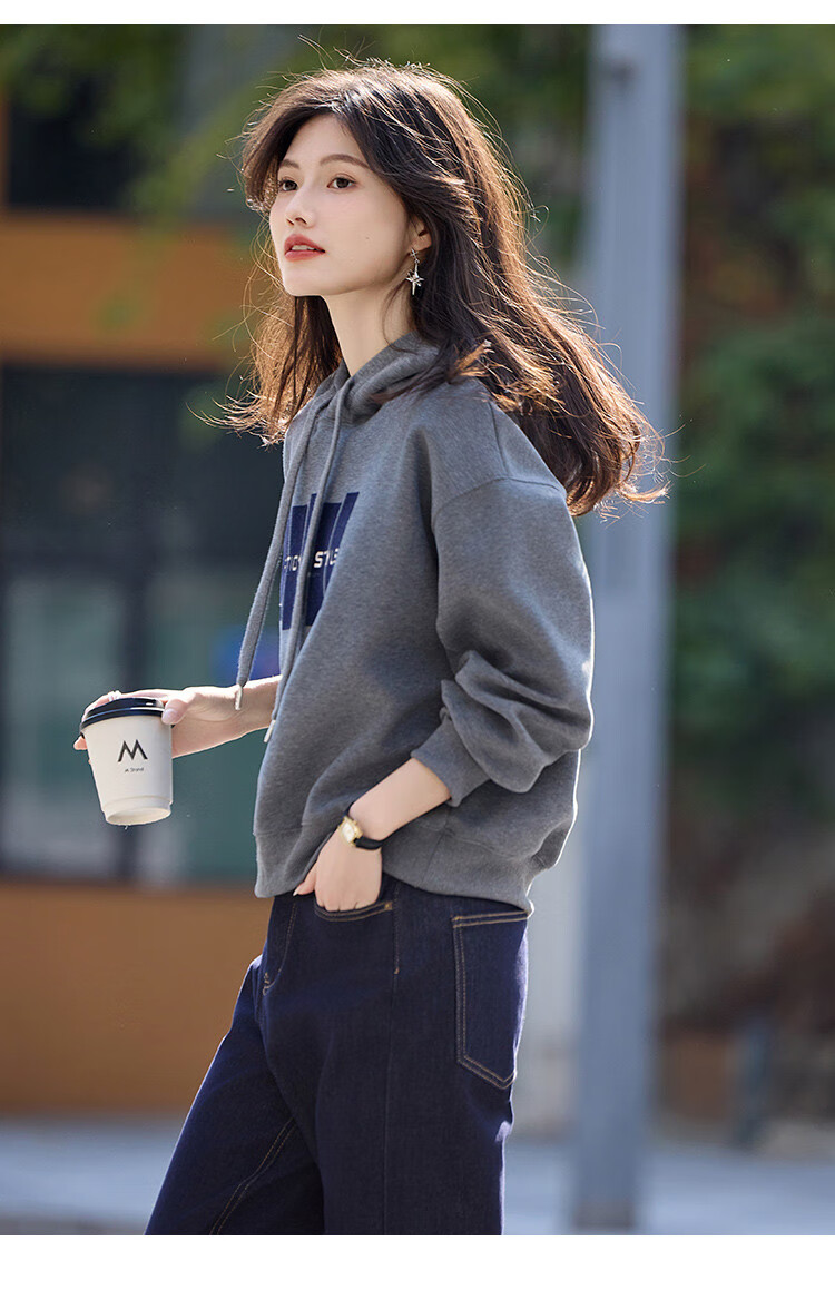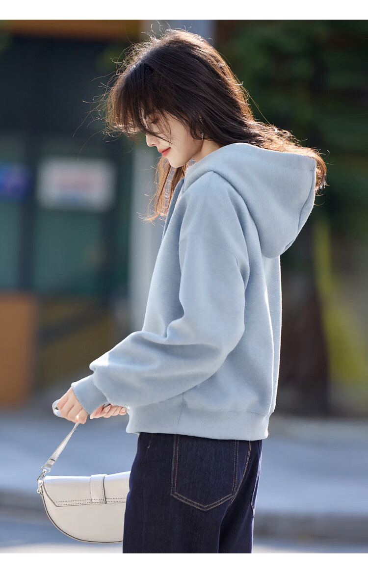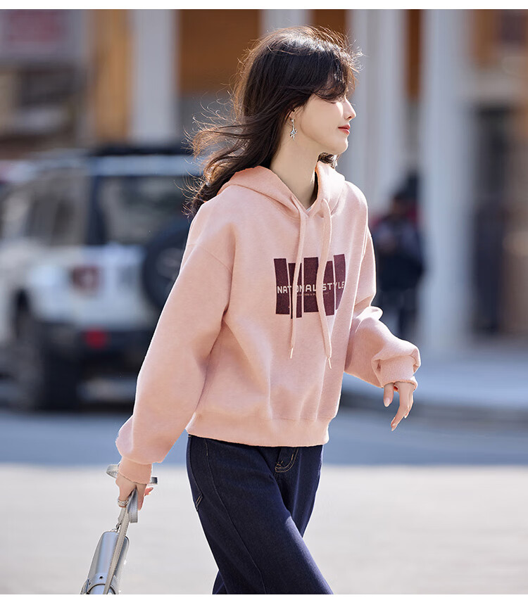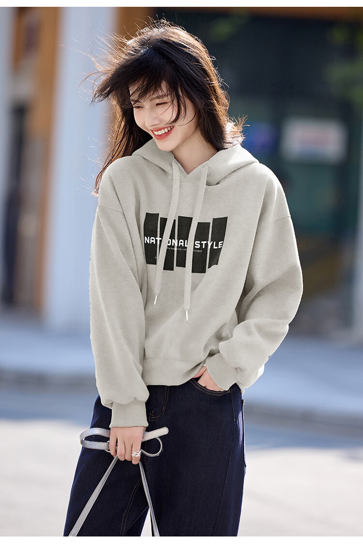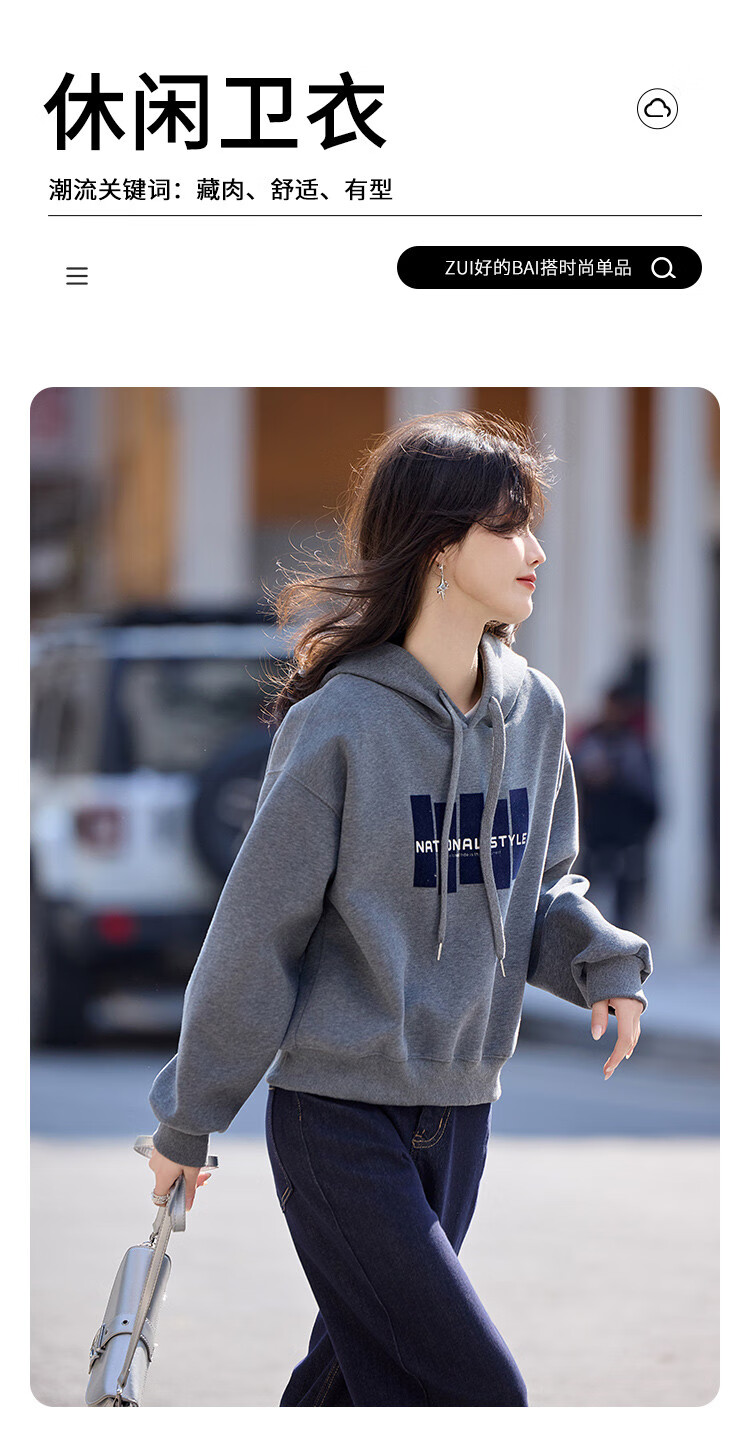Shangjing Letter Color Block Hooded Sweatshirt Women's 2025 Autumn New Loose Casual Versatile Drawstring Top Blue L