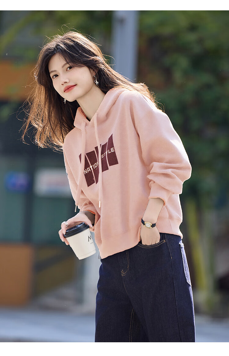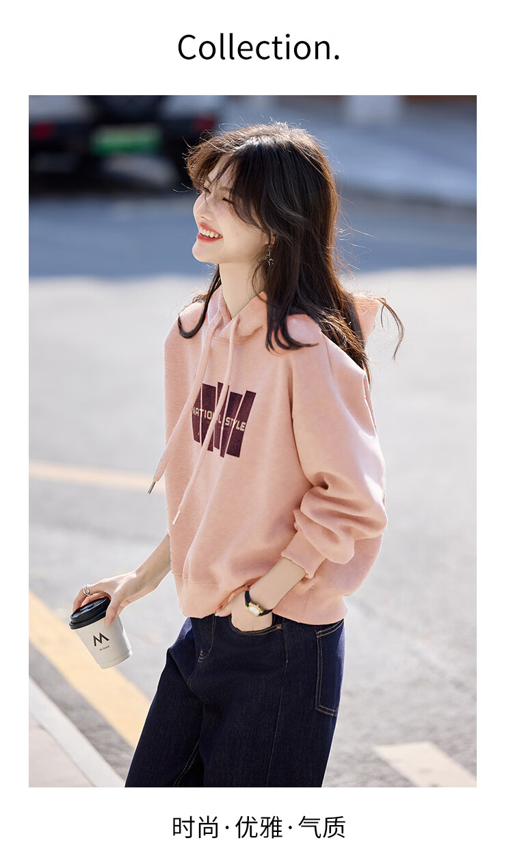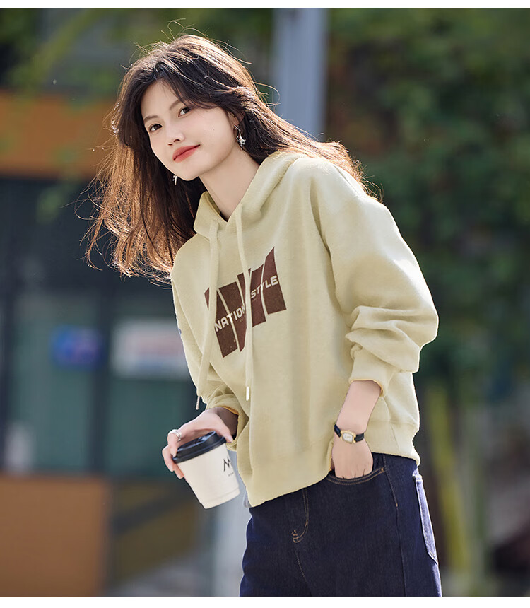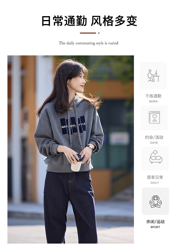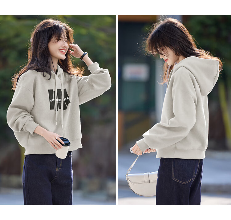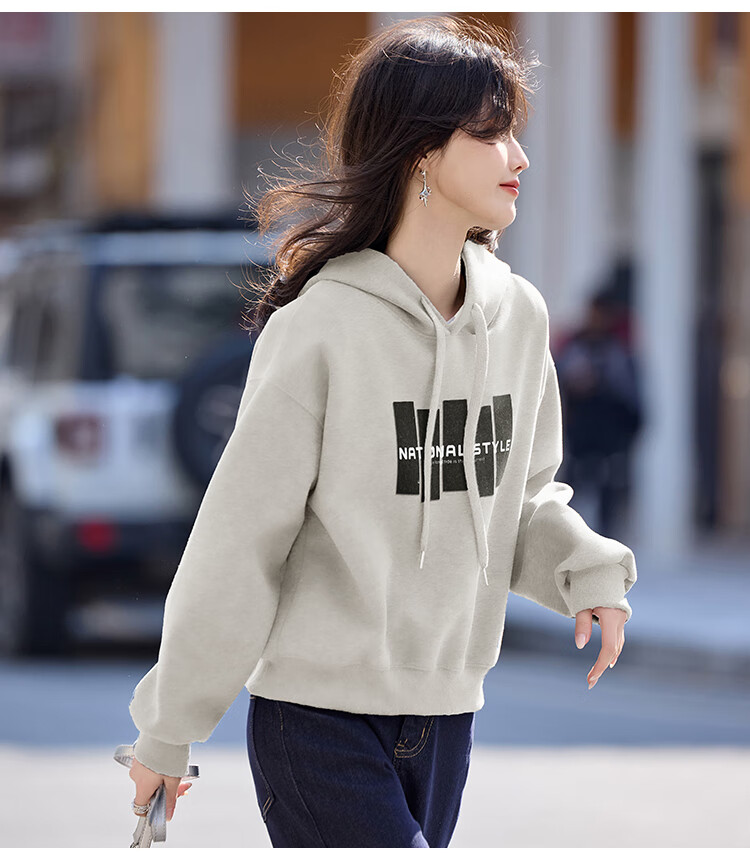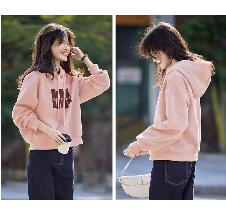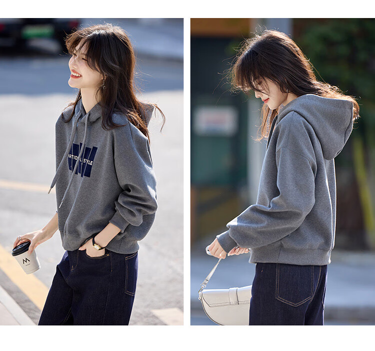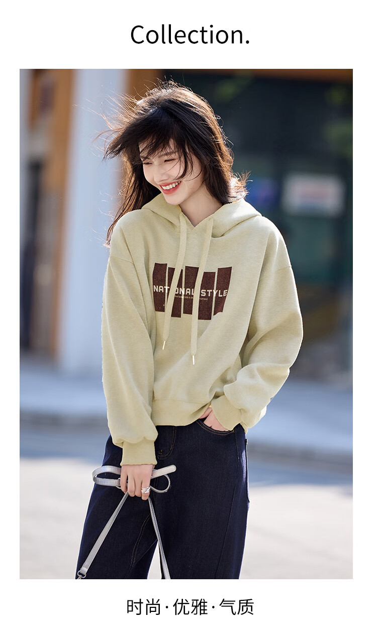 Shangjing Letter Color Block Hooded Sweatshirt Women's 2025 Autumn New Loose Casual Versatile Drawstring Top Blue L