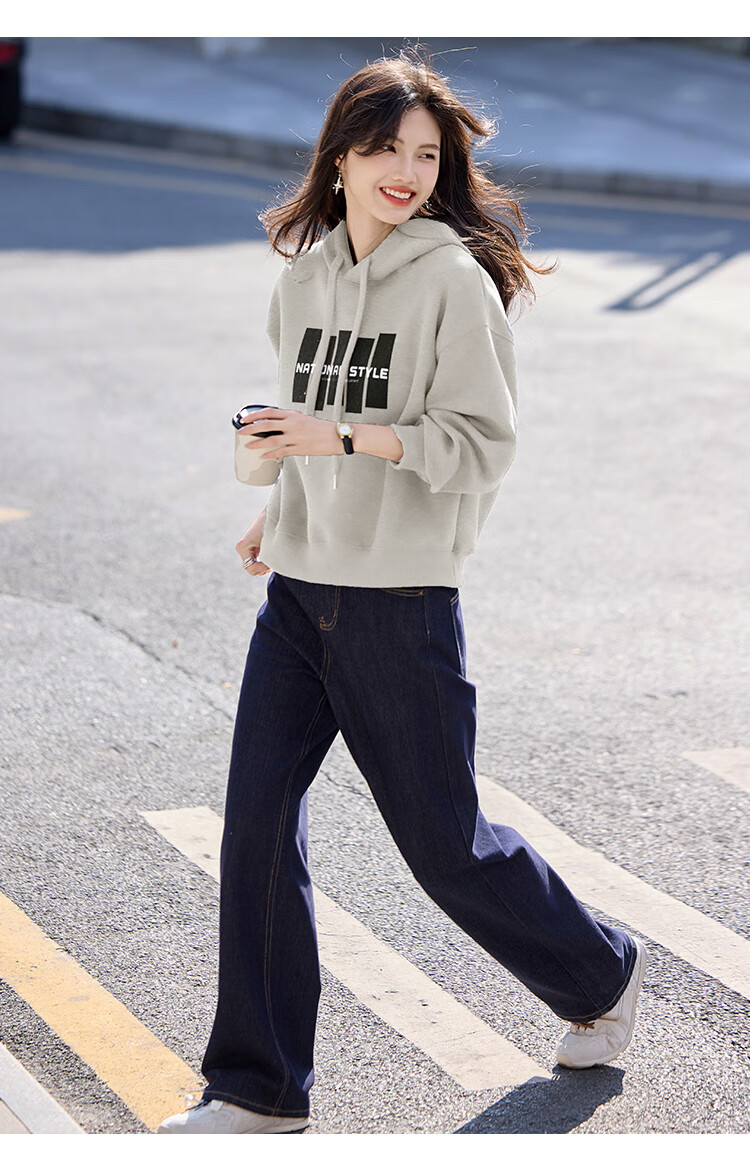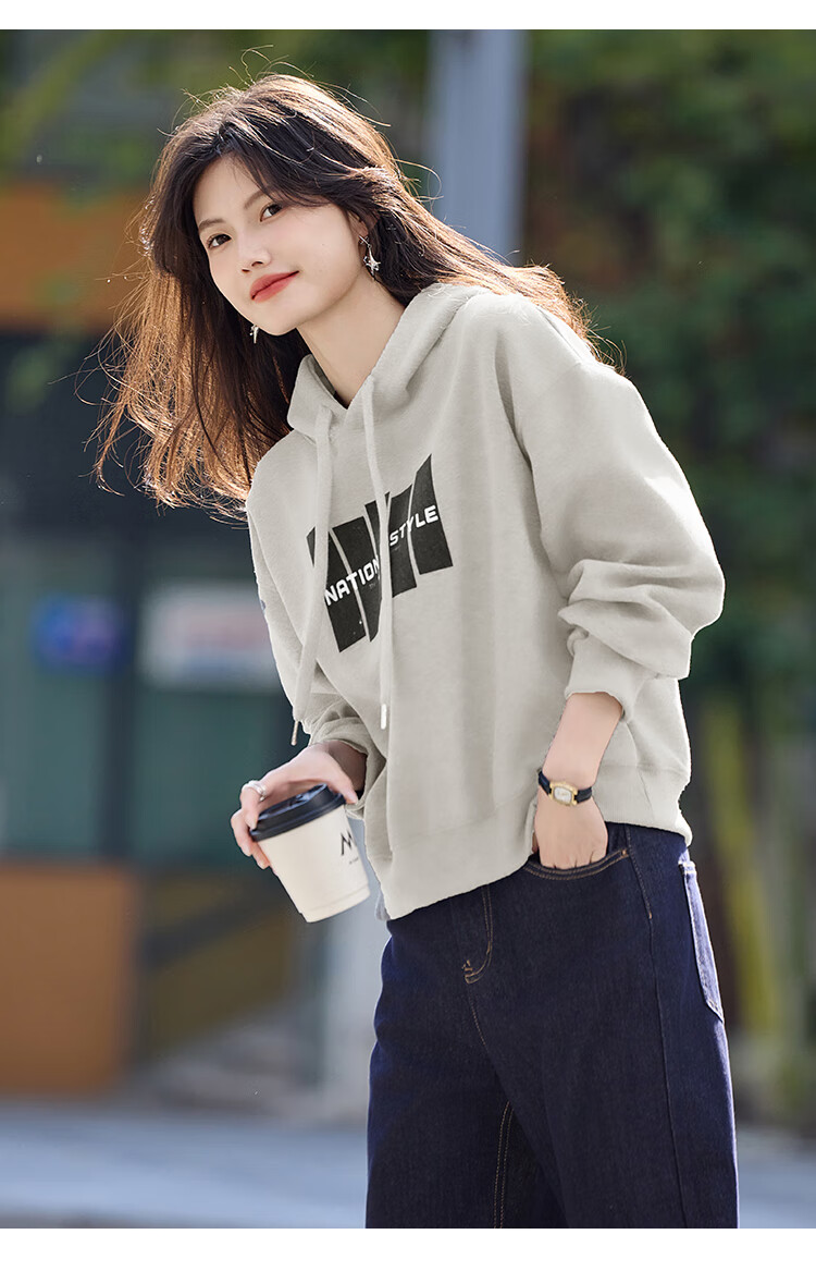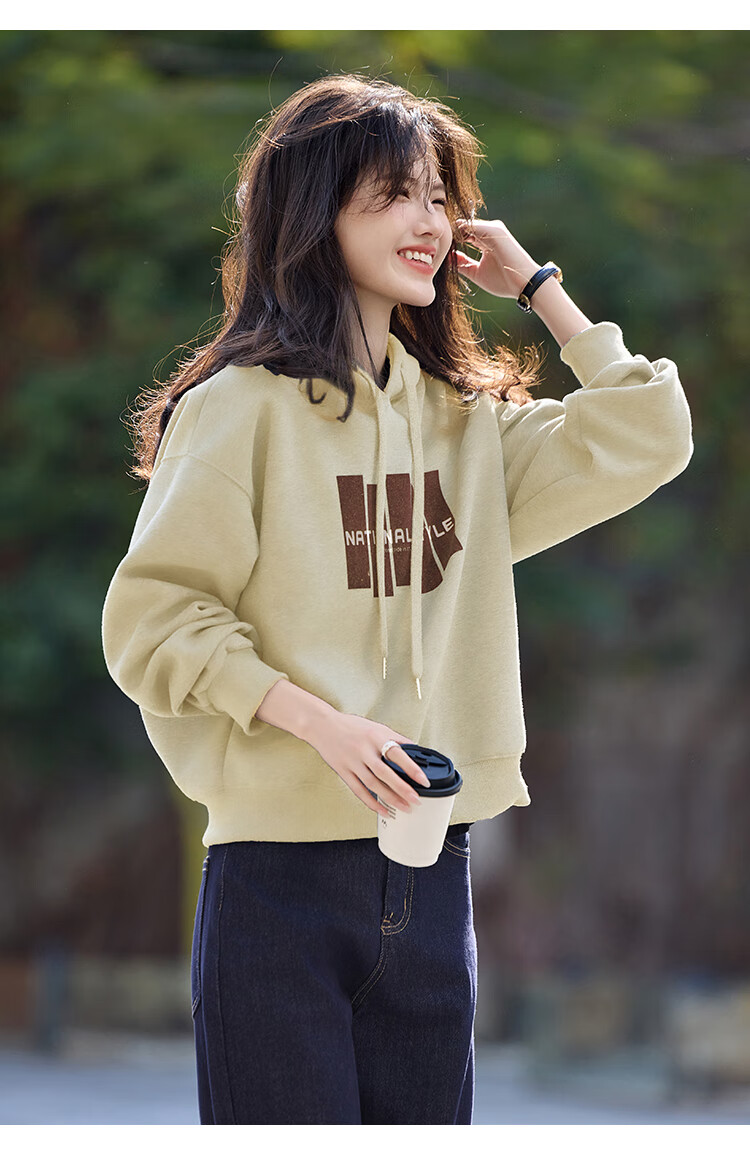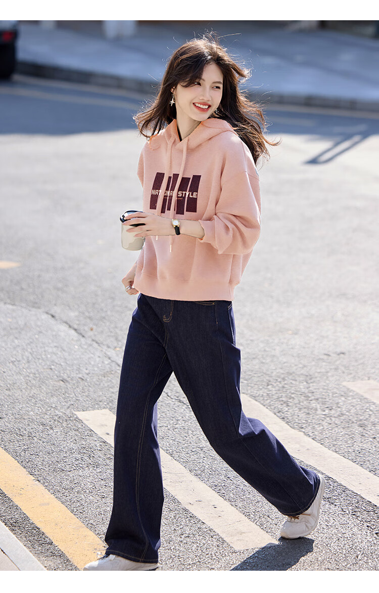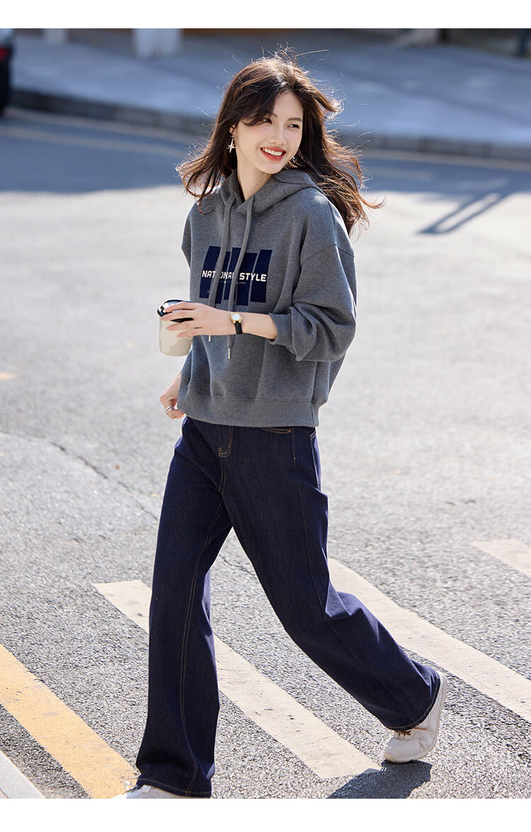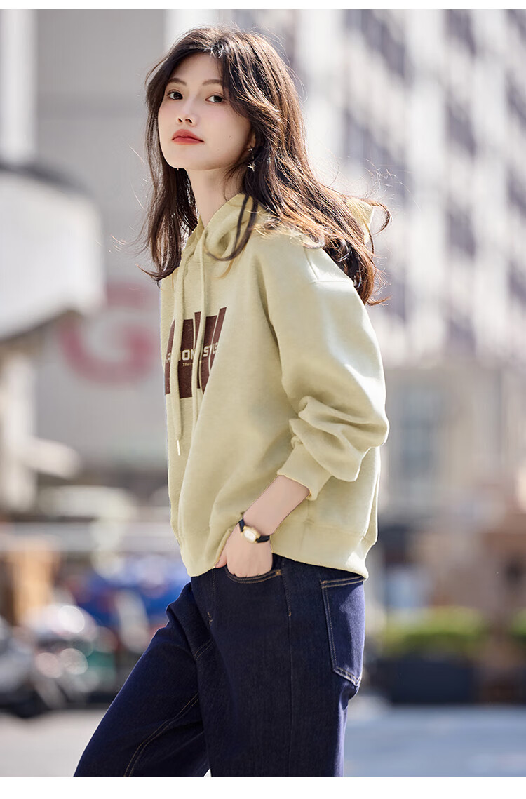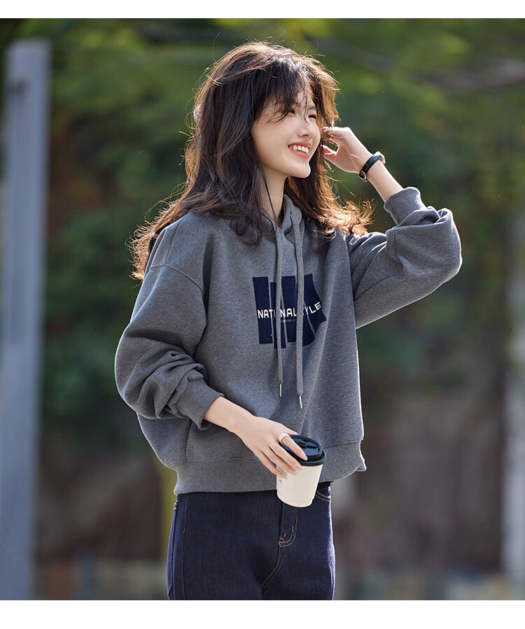 Shangjing Letter Color Block Hooded Sweatshirt Women's 2025 Autumn New Loose Casual Versatile Drawstring Top Blue L