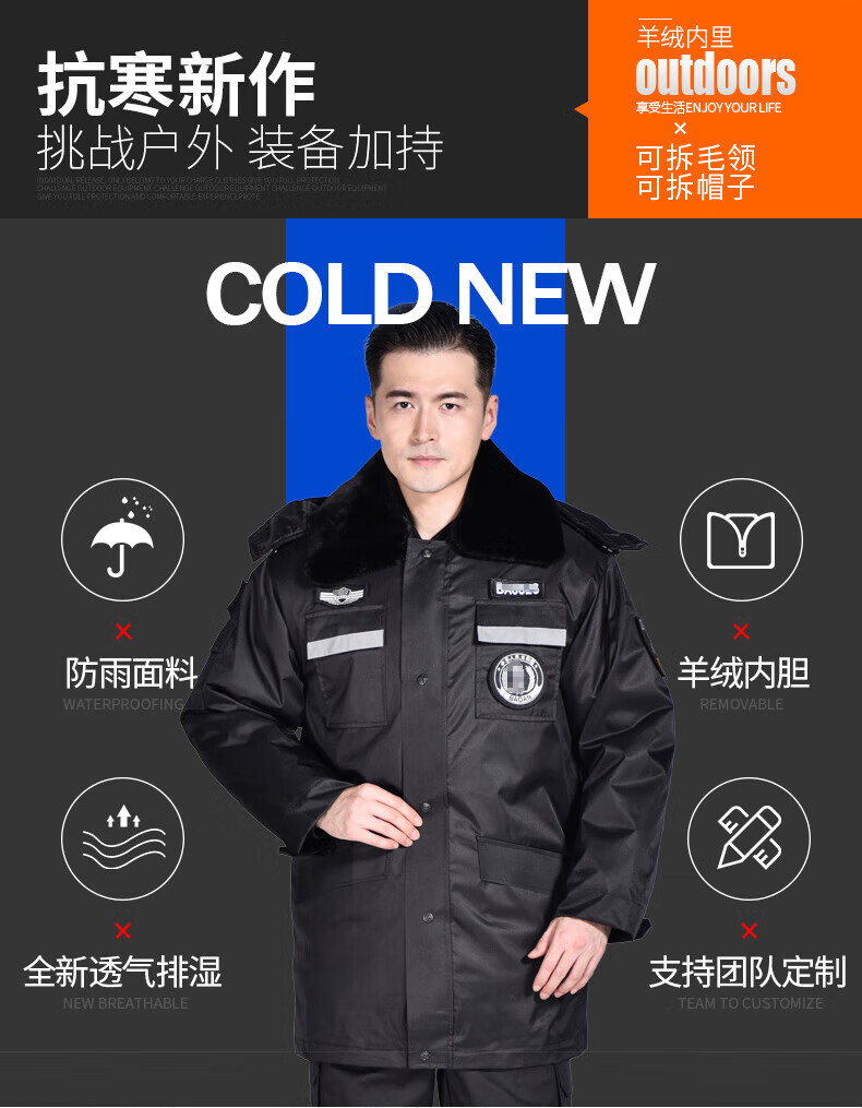 Paul Lanzhi extended security clothing winter military coat outdoor cold-proof clothing military large cotton coat cold storage patrol guard guard customization