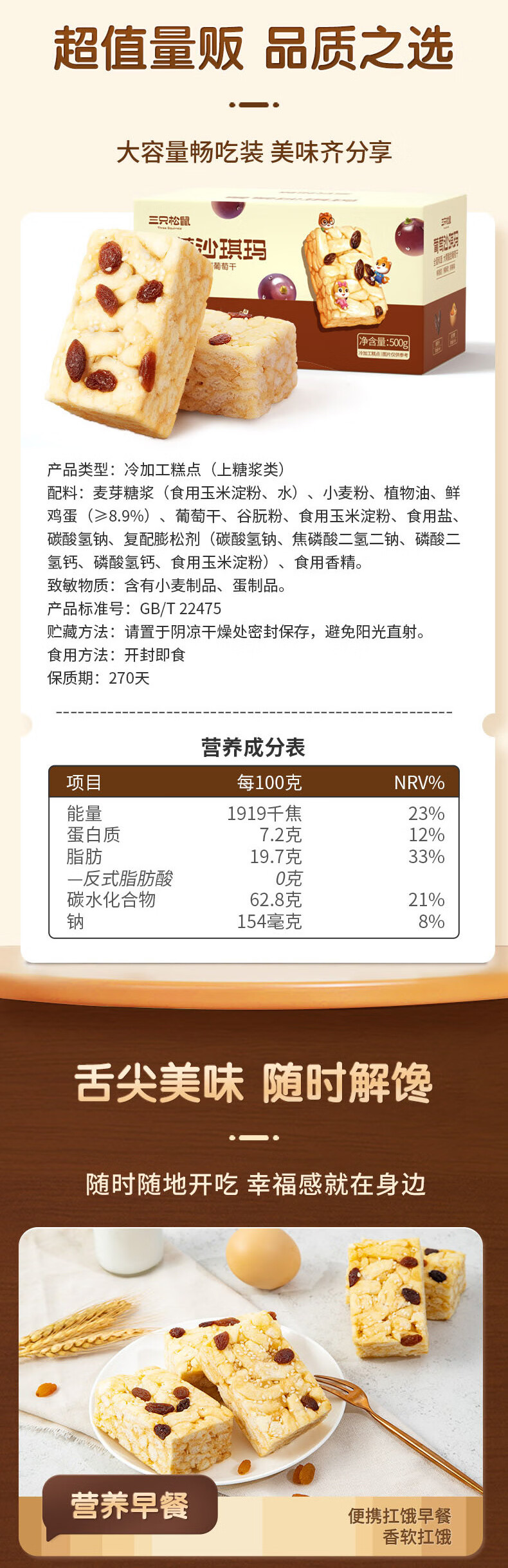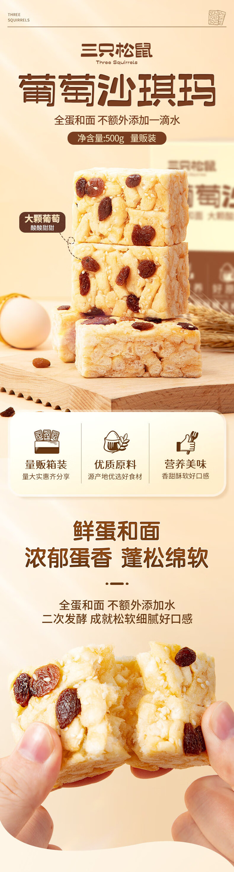 Three Squirrels Grape Flavor Shaqima 500g Snack Breakfast Food Bread Afternoon Tea Meal Replacement Healthy Chinese Pastries