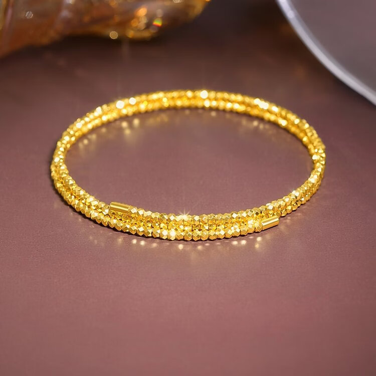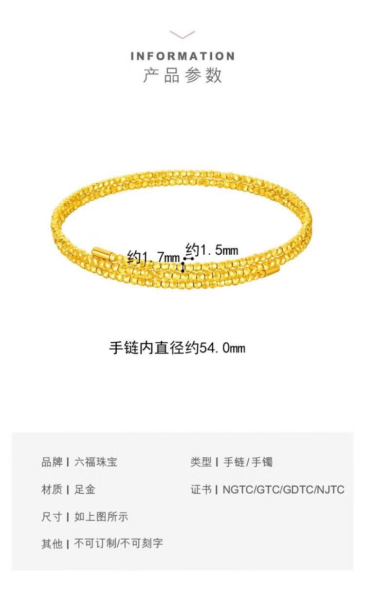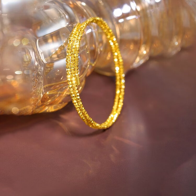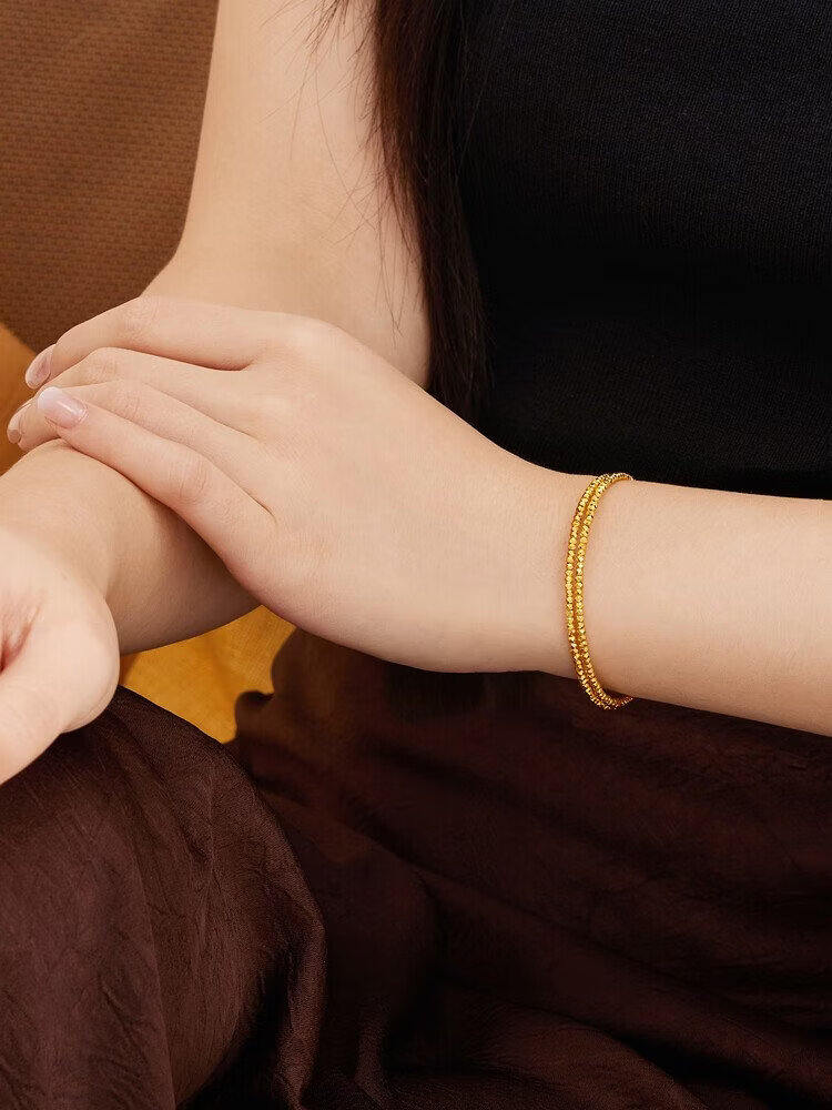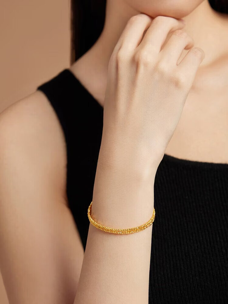 Lukfook Jewelry Gold Bracelet Bundy Pearl Light Shadow Gold Pure Gold Gold Bead Elastic Bracelet Valentine's Day Gift Price Approximately 6.60g