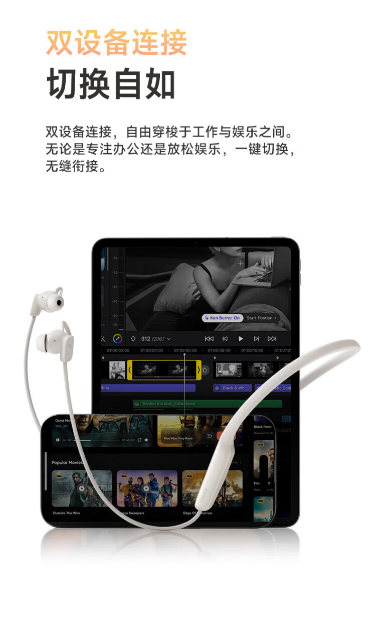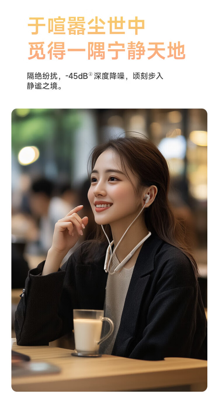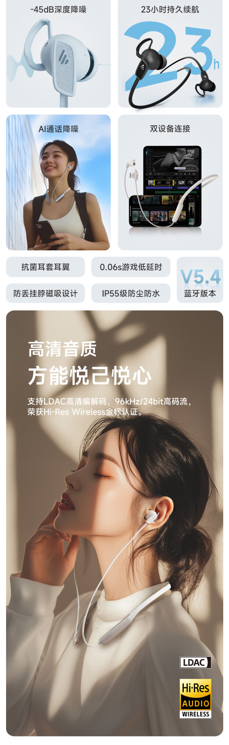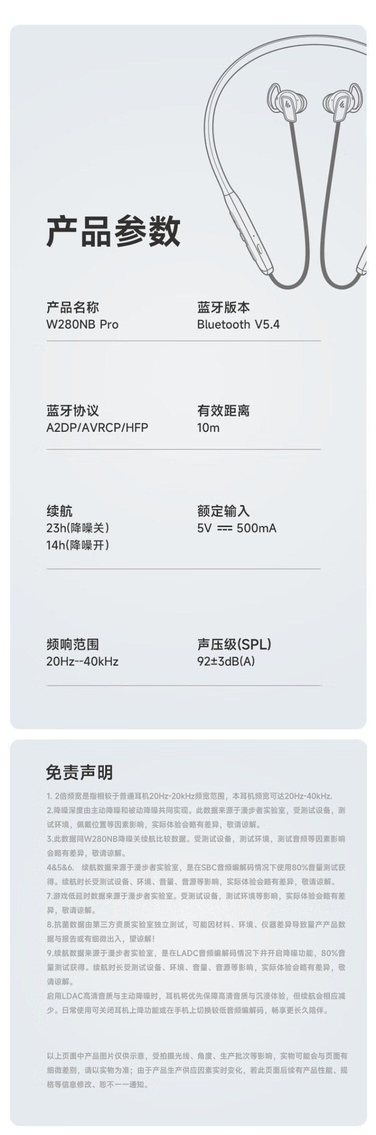 Edifier (EDIFIER) W280NB Pro neck-mounted active noise reduction Bluetooth headset, Bluetooth 5.4, 45dB noise reduction, suitable for Apple, Huawei, Xiaomi and OPPO mobile phones, elegant black