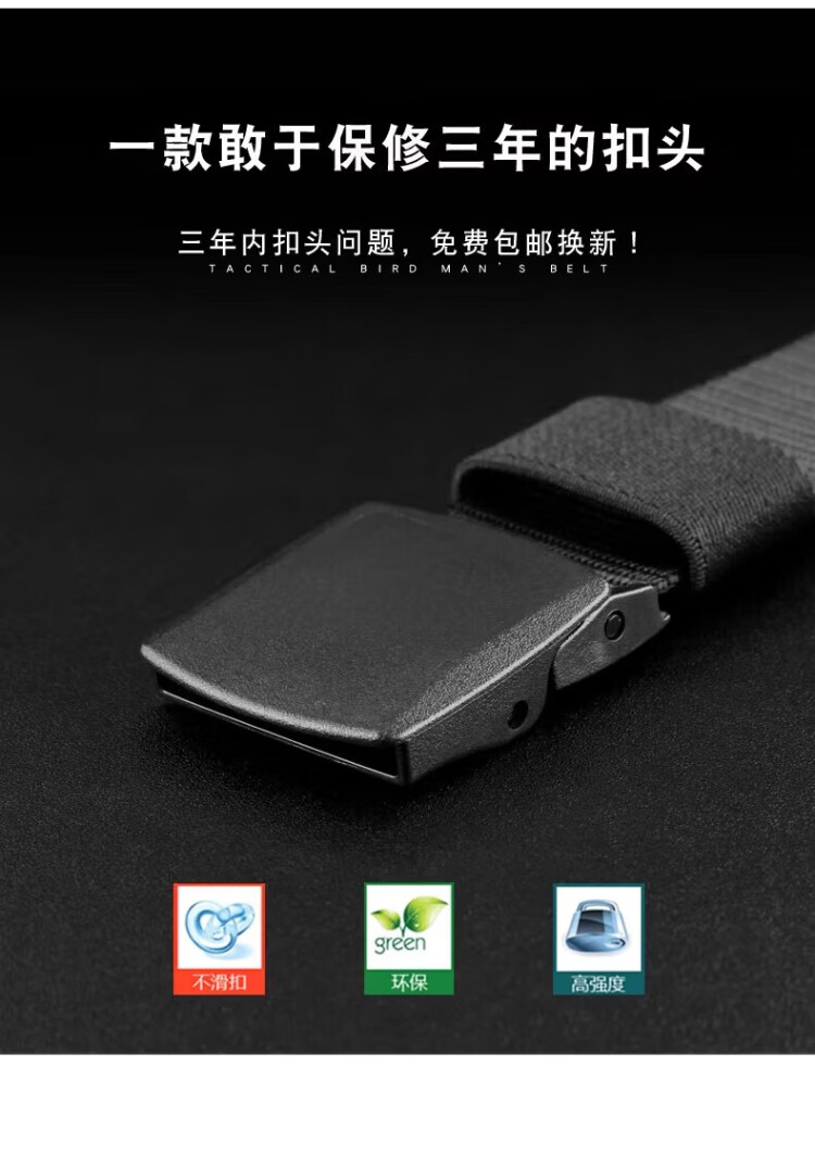 Tactical Bird Iron-free | Anti-metal allergy belt for men, non-magnetic plastic buckle, non-metal security inspection canvas belt for women