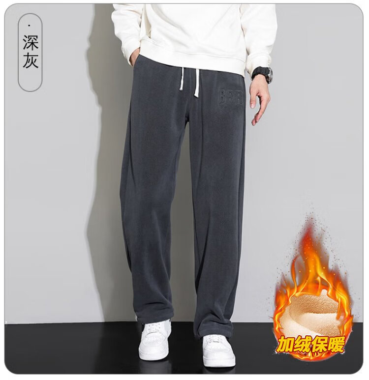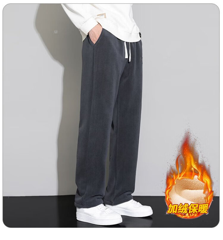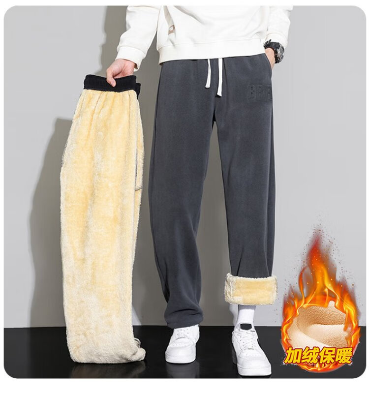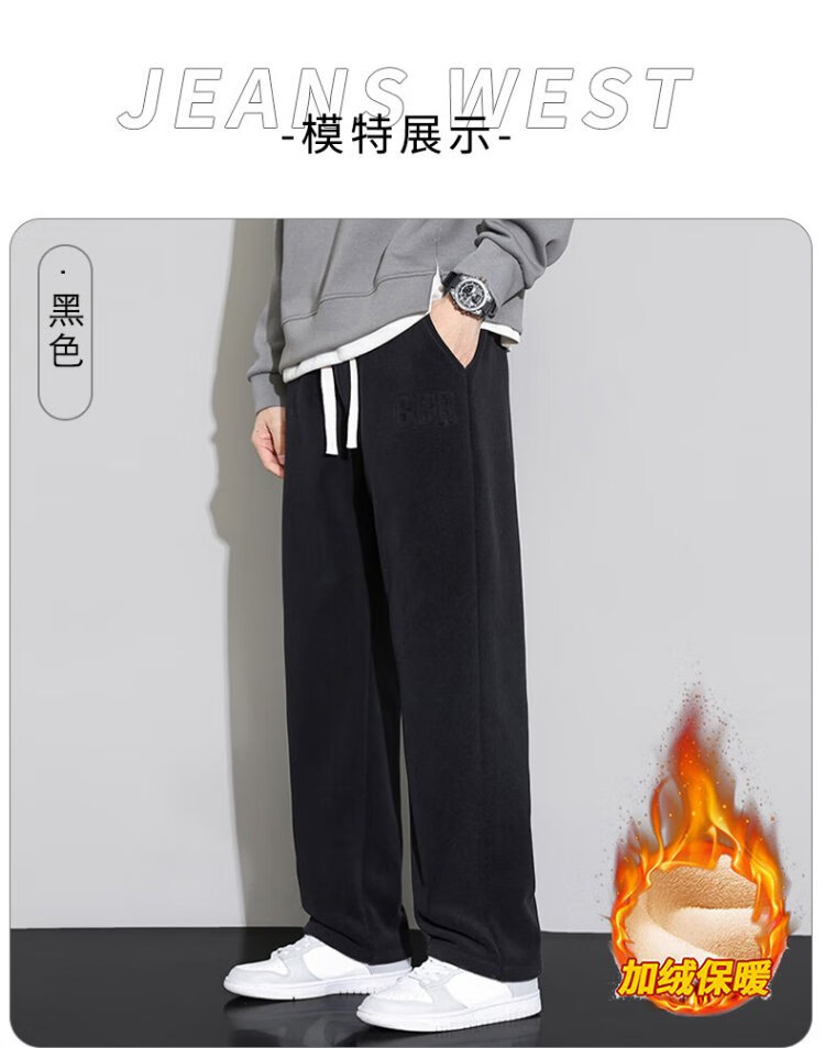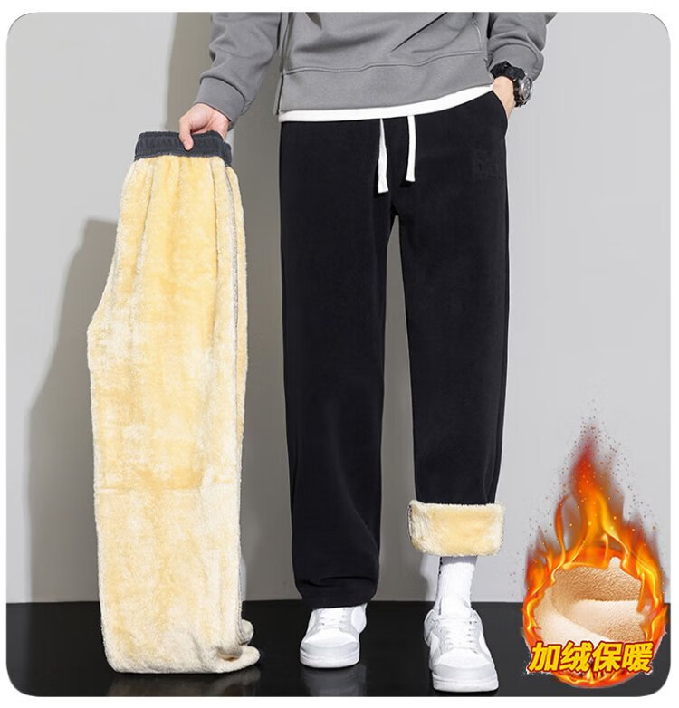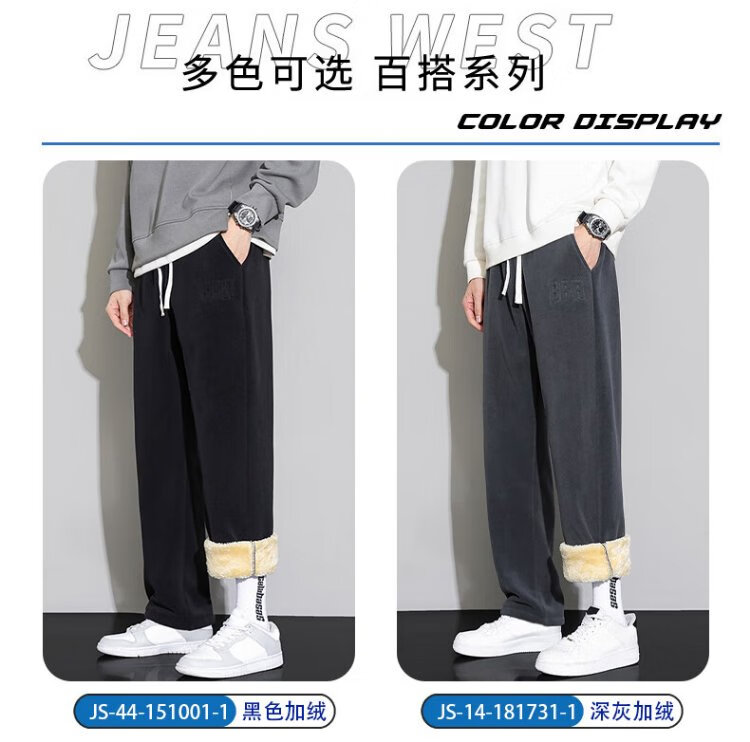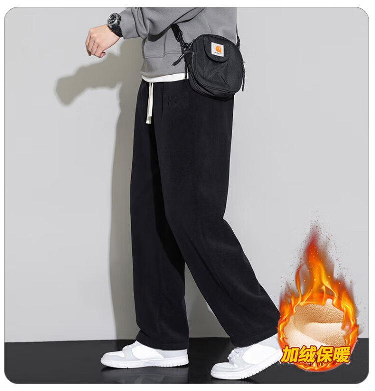 JEANSWEST casual pants men's velvet autumn and winter lamb velvet thickened warm versatile wide-leg trousers men's black velvet XL