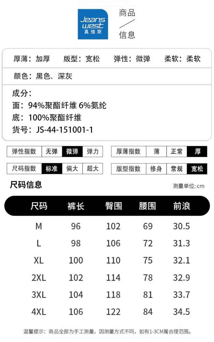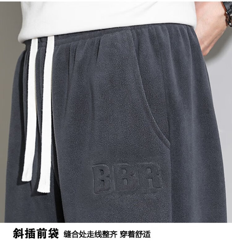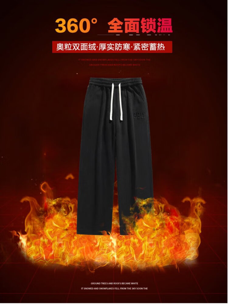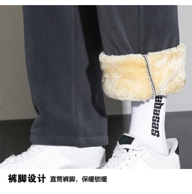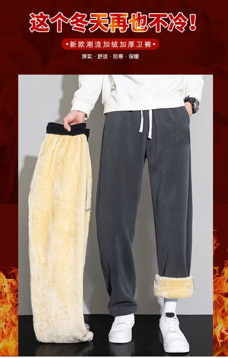 JEANSWEST casual pants men's velvet autumn and winter lamb velvet thickened warm versatile wide-leg trousers men's black velvet XL