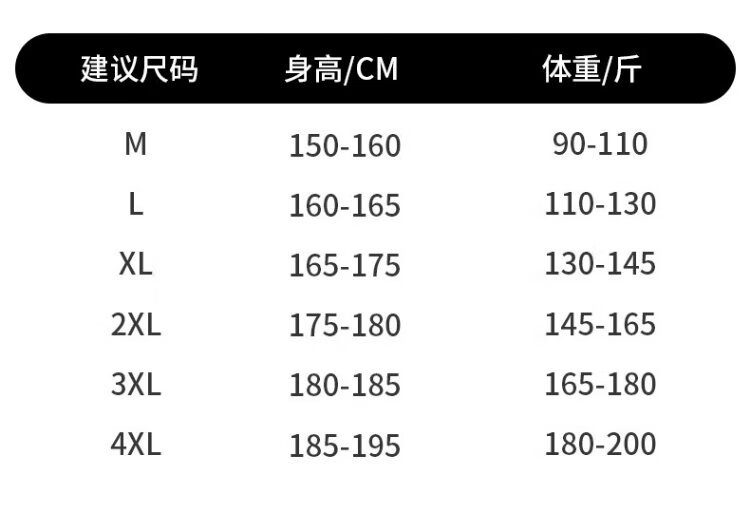 China (cm) 165 / 88-90 170 / 96-98 175 / 108-110 180 / 118-122 185 / 126-130
