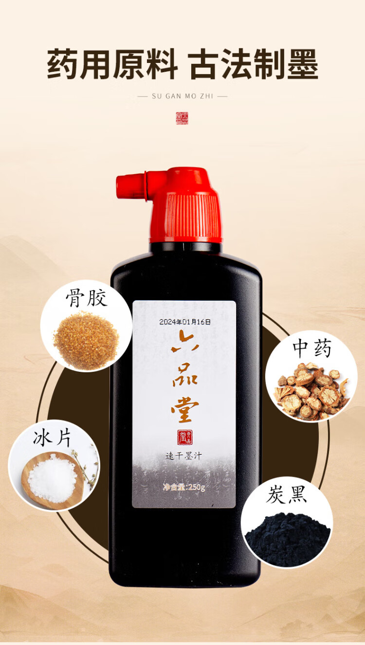 Liupintang calligraphy special quick-drying ink 250g large bottle brush ink activity for construction site calligraphy and painting Chinese painting ink vial beginners practice calligraphy and writing couplets quick-drying ink