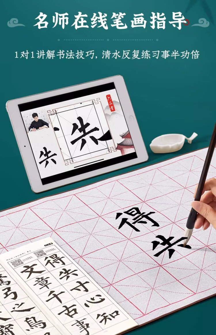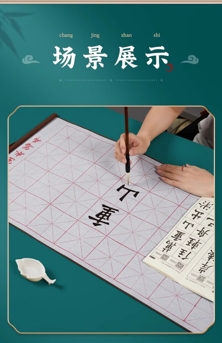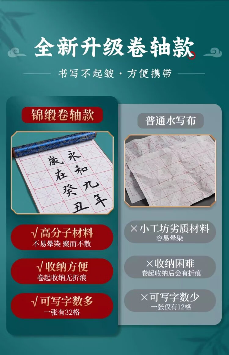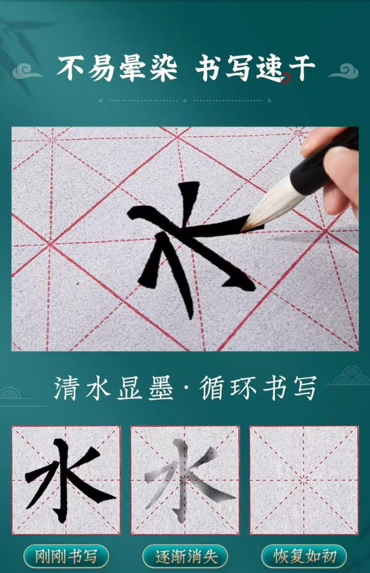 Liupintang brush calligraphy water writing cloth for beginners to practice calligraphy, special for primary school students to practice calligraphy rice grid water writing calligraphy cloth, washed cloth dipped in water, quick drying, imitation Xuan Wenfang fifth treasure 140cm