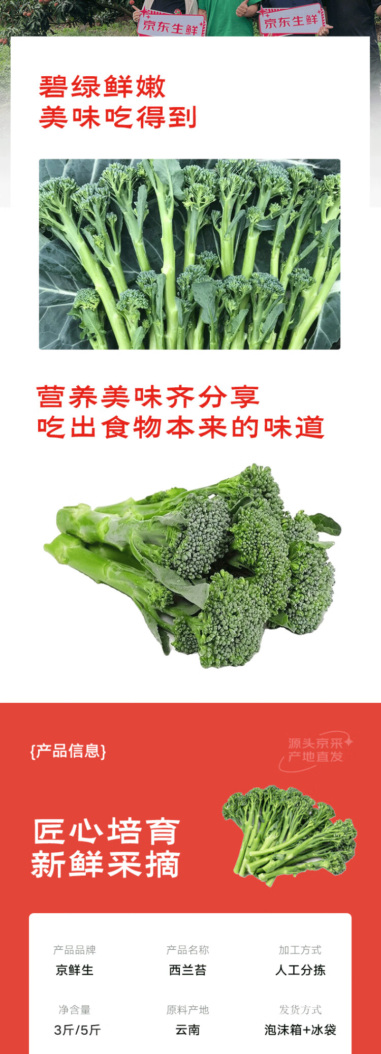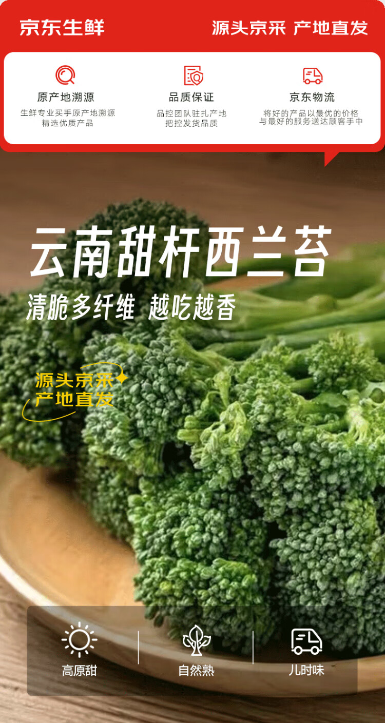 Beijing fresh Yunnan fresh broccoli moss, long-stem broccoli moss, sweet, crisp and tender, kept fresh with ice, net weight 2.5Jin Jin equals 0.5kg, straight from the source