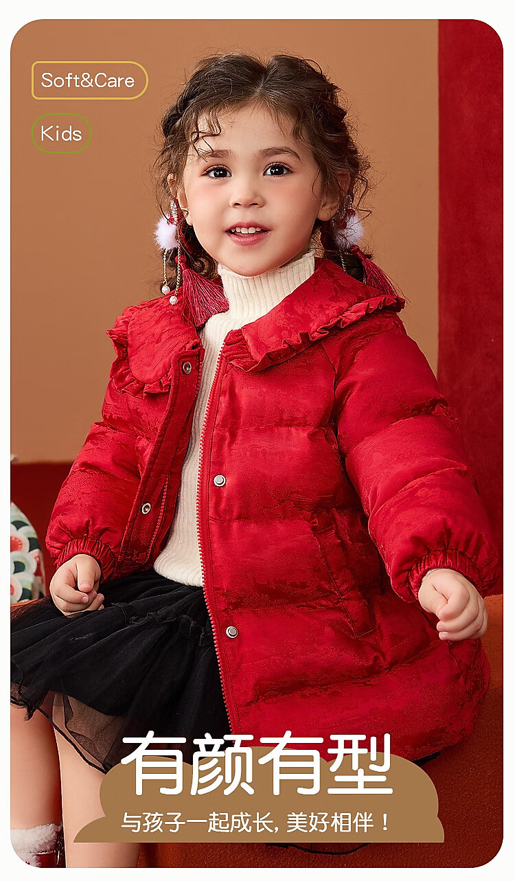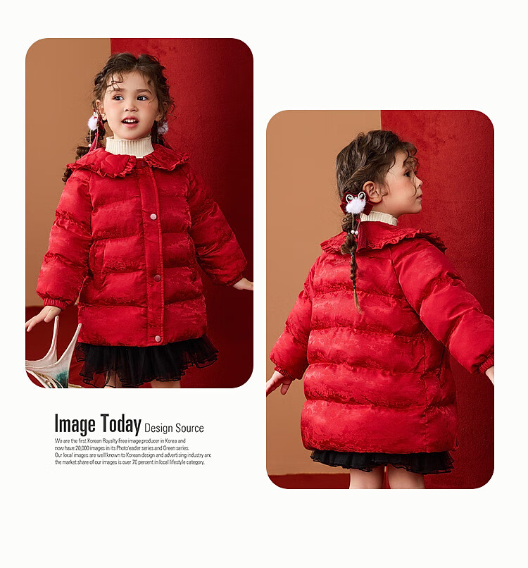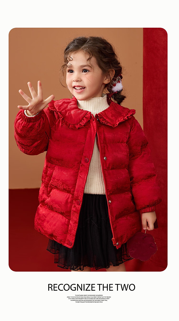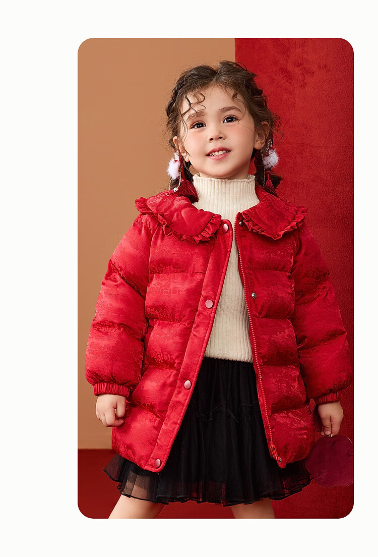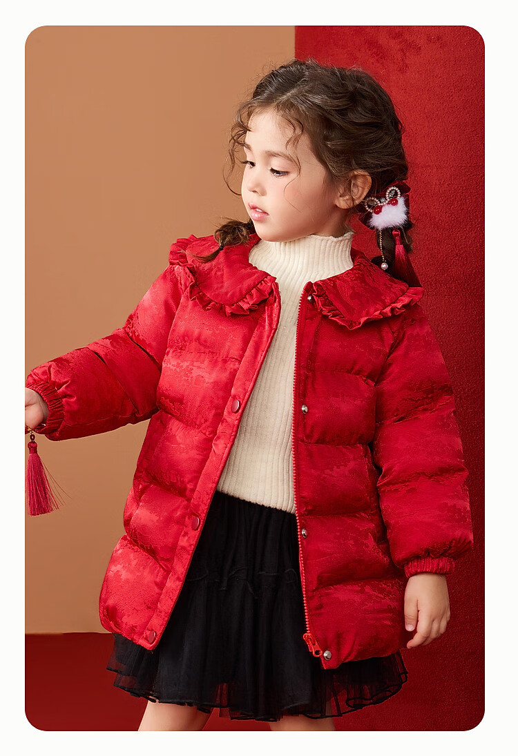 ASK JUNIOR New Year's wear girls' cotton-padded clothes winter children's fungus lapel cotton-padded coat jacket quilted warm cotton-padded jacket red 130