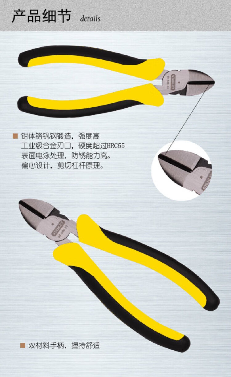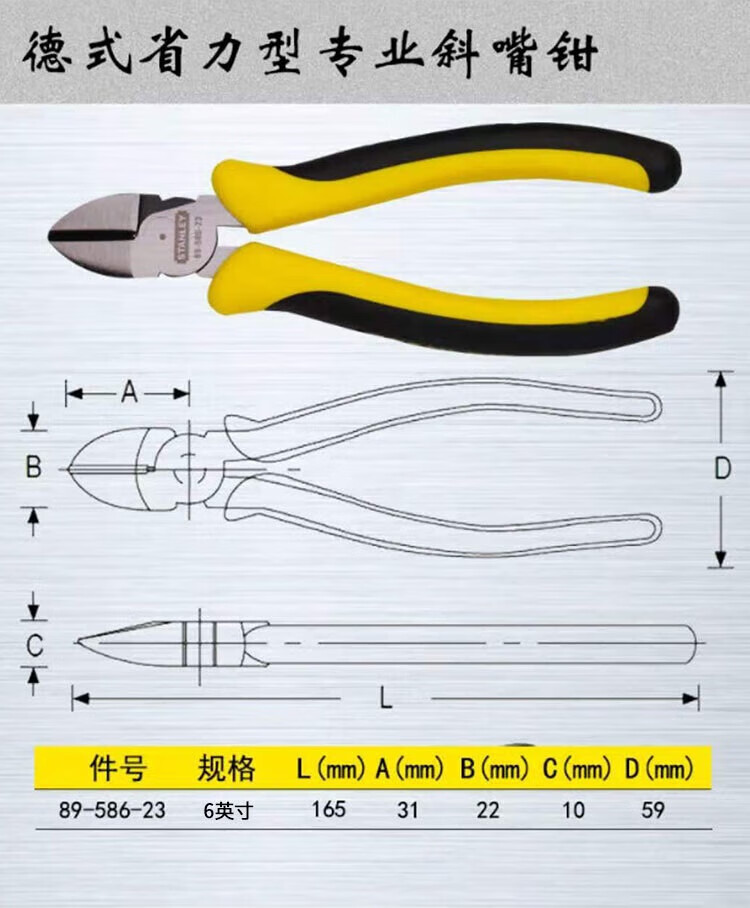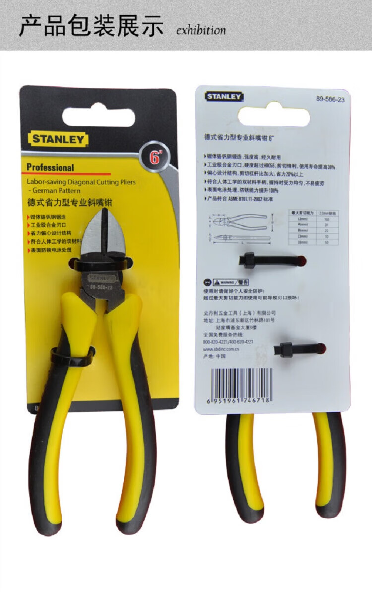 Stanley (STANLEY) diagonal pliers electrician partial pliers wire cutter German labor-saving professional diagonal pliers 6 inches 89-586-23