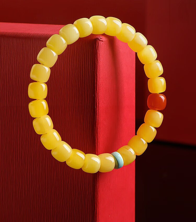 Yueyin Baichuan beeswax bracelet for men and women, chicken oil yellow floating flowers, straight cut surface, turquoise, southern red, multi-treasure single circle bracelet with certificate