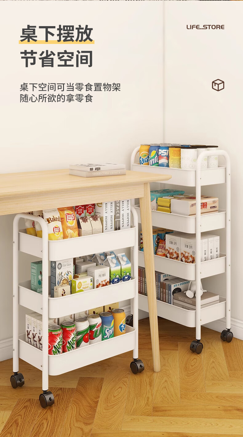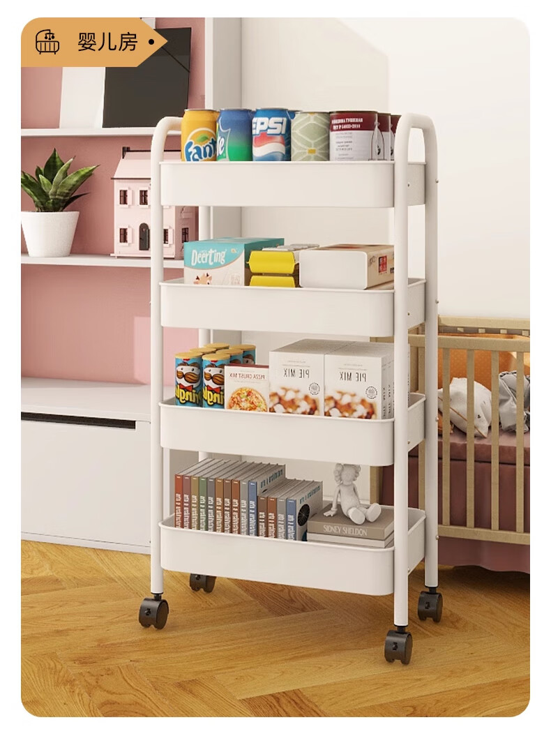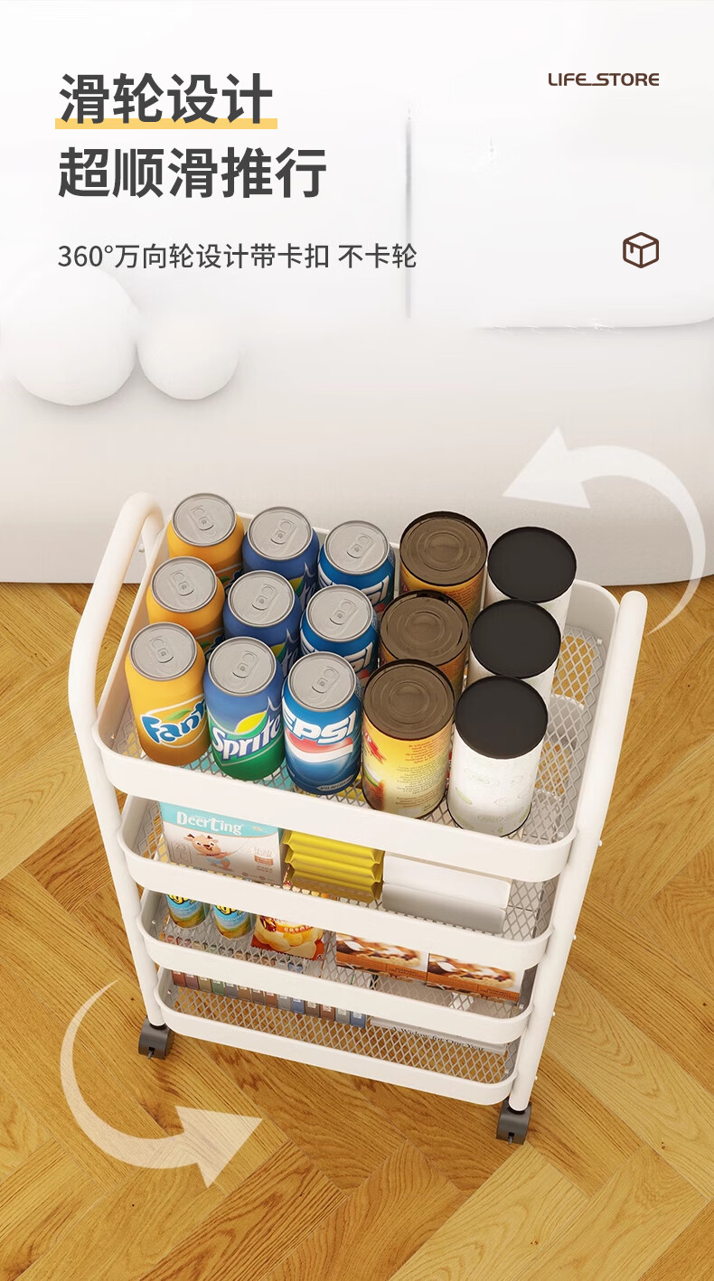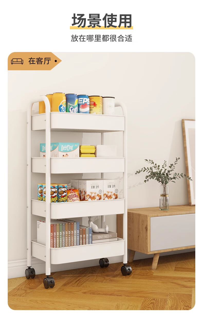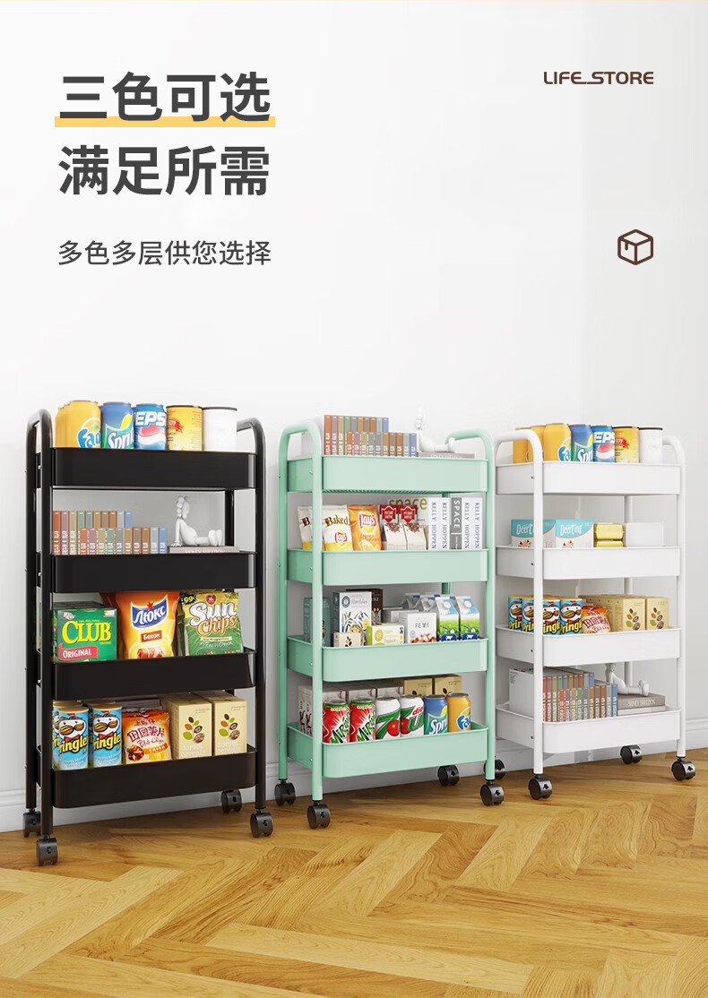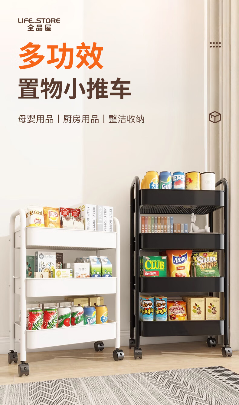 Quanpinwu trolley storage rack removable floor-to-ceiling storage rack household snack kitchen multi-layer carbon steel wheeled rack three black