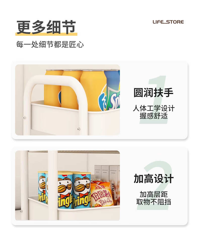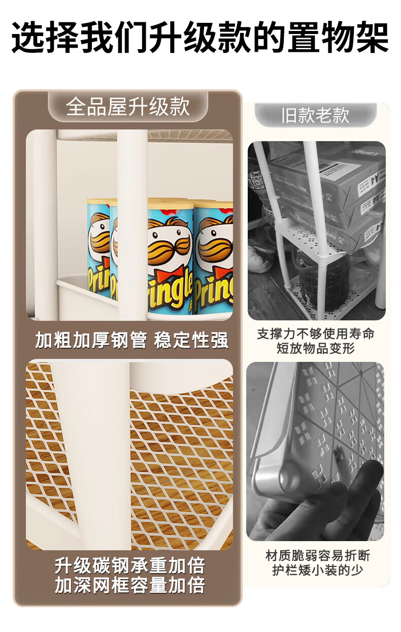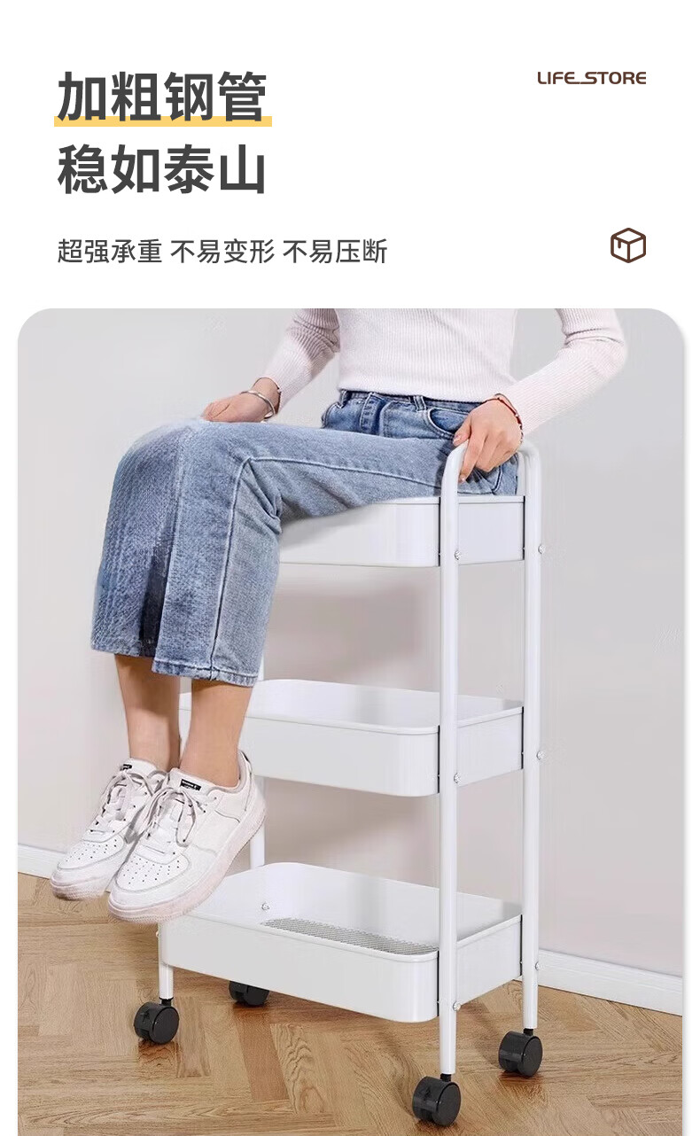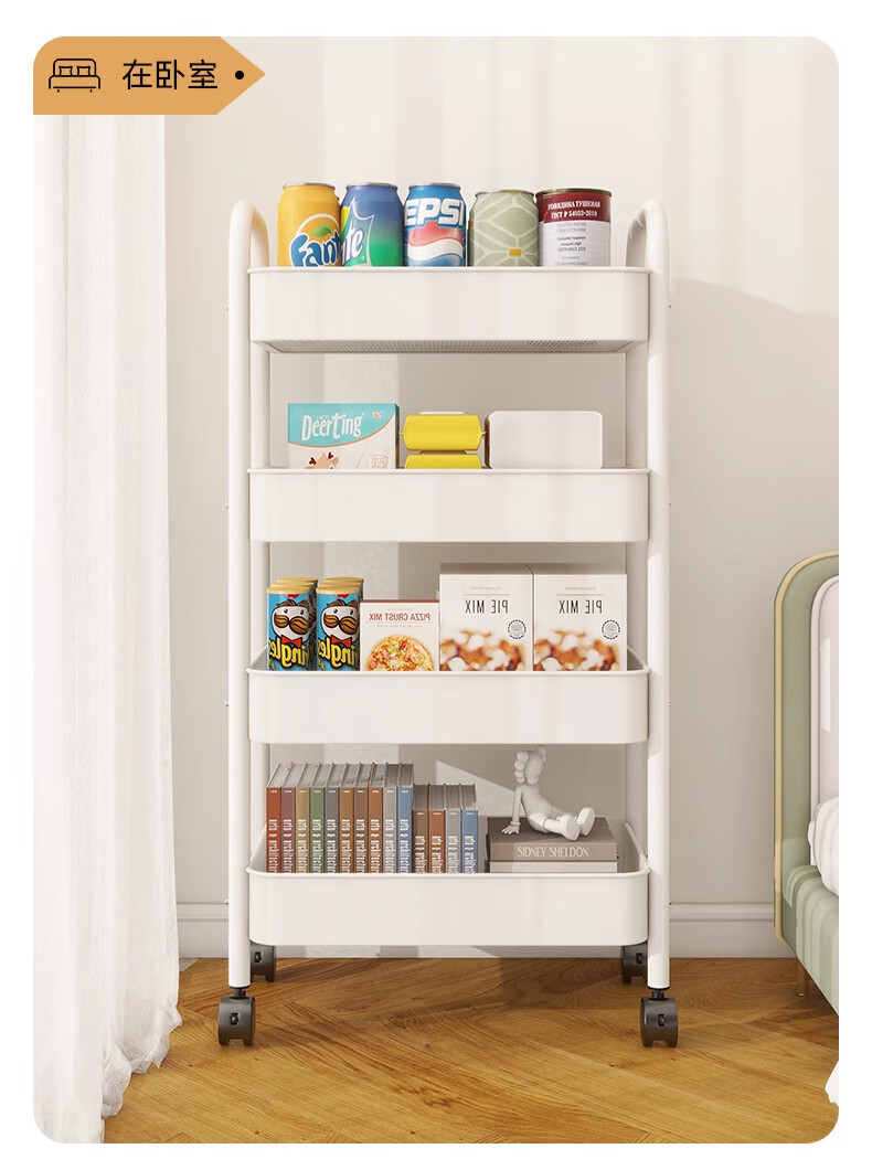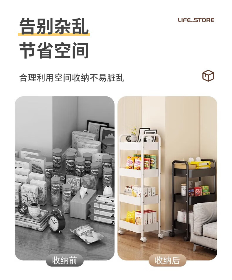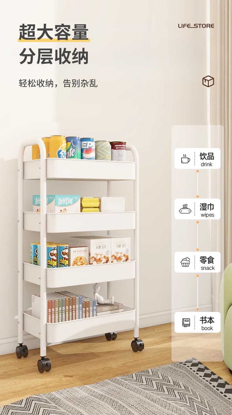 Quanpinwu trolley storage rack removable floor-to-ceiling storage rack household snack kitchen multi-layer carbon steel wheeled rack three black