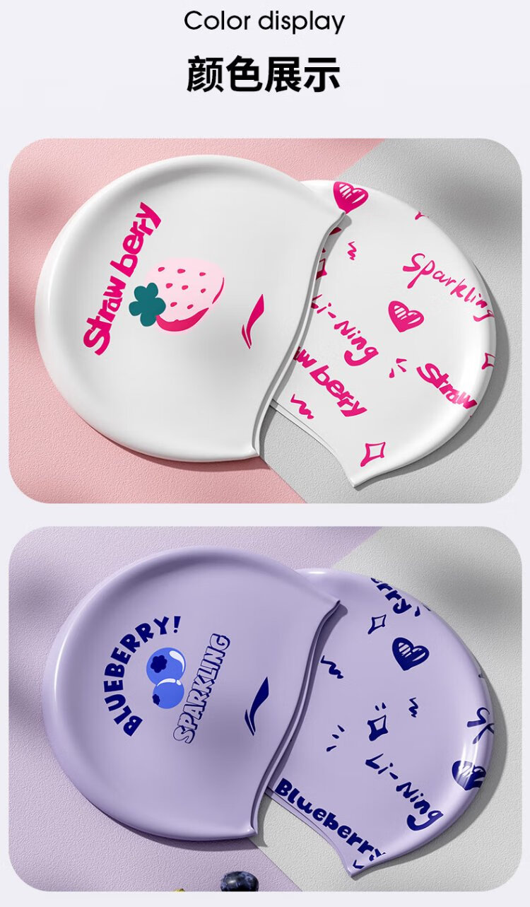 Li Ning (LI-NING) adult swimming cap for women, comfortable and stylish silicone long hair ear protection waterproof silicone swimming cap 4111 white