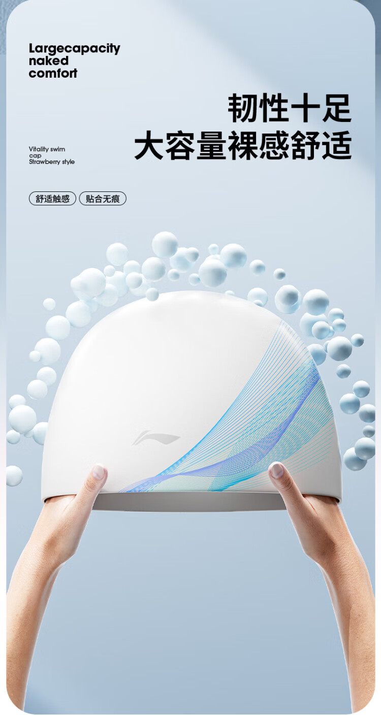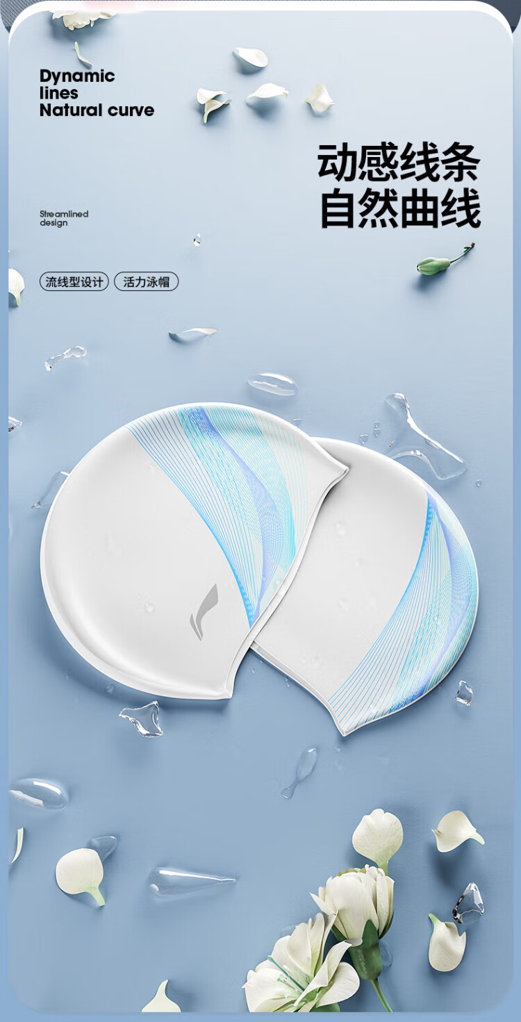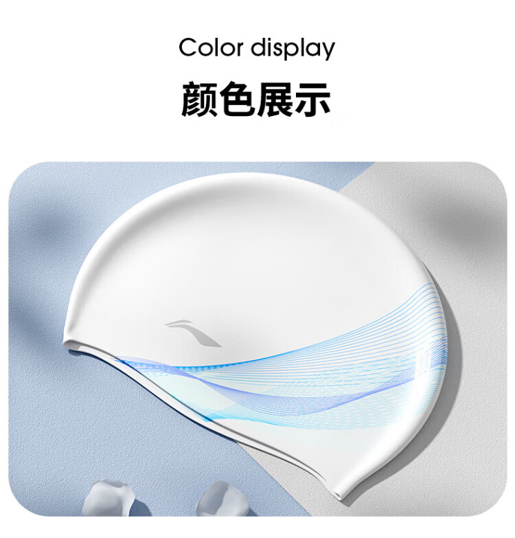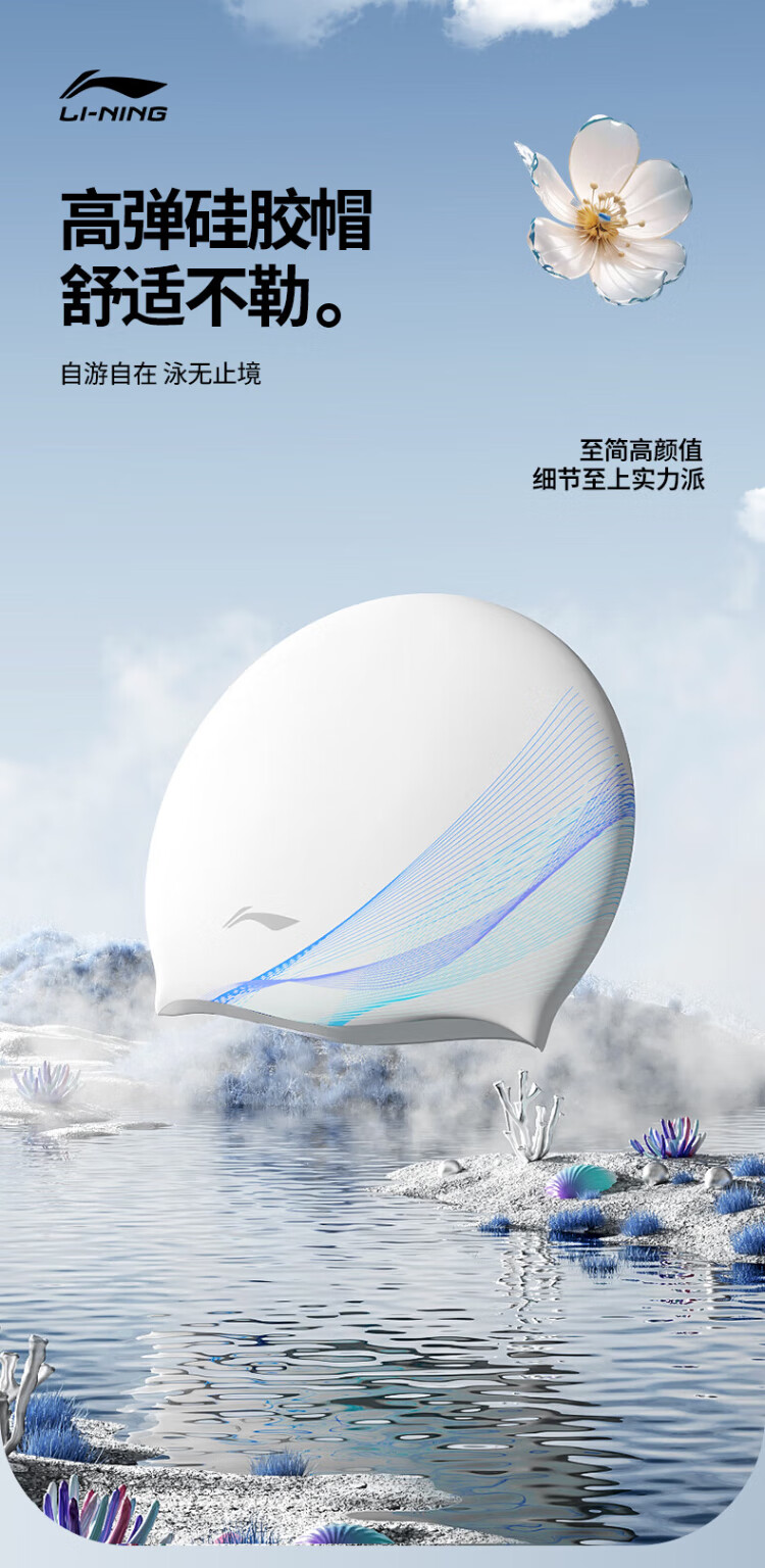Li Ning (LI-NING) swimming cap long hair silicone waterproof swimming cap fashionable men and women printed swimming cap 4101 white