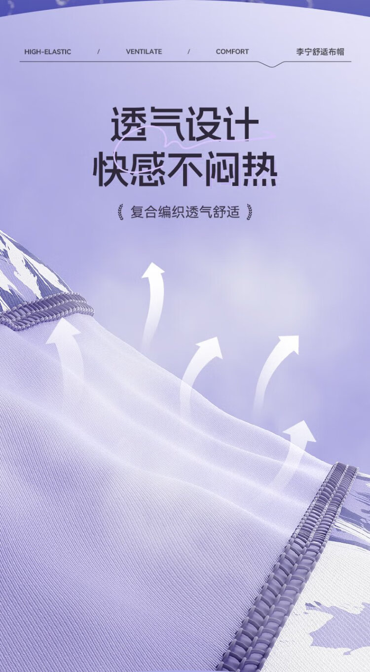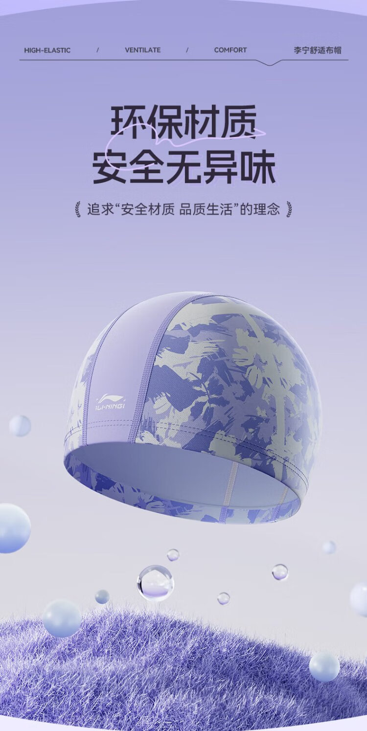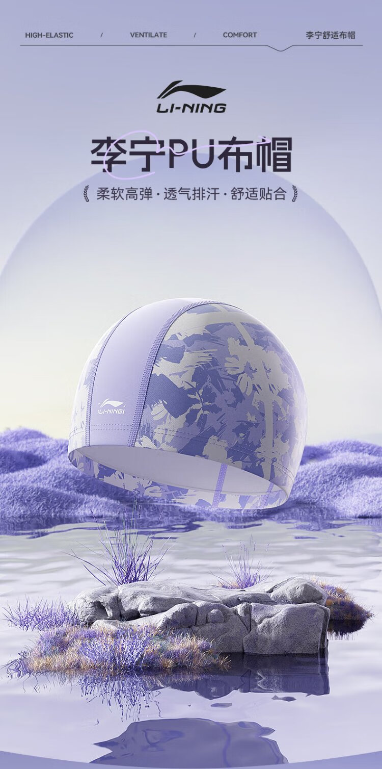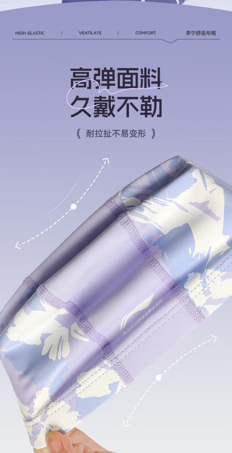 Li Ning (LI-NING) swimming cap for men and women, long hair, waterproof PU coating swimming cap, fashionable ear protection, head-protecting printed swimming cap 6611 purple
