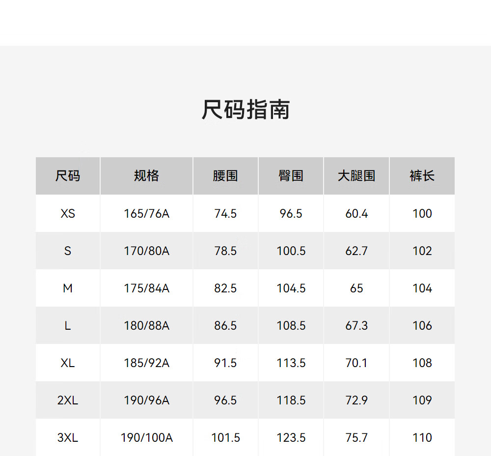 China (cm) 160-165/84-86 165-170 / 88-90 167-172 / 92-96 168-173 / 98-102 170-176 / 106-110