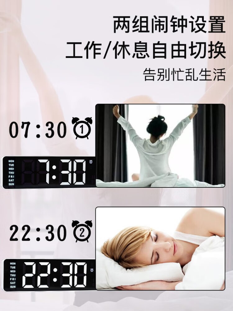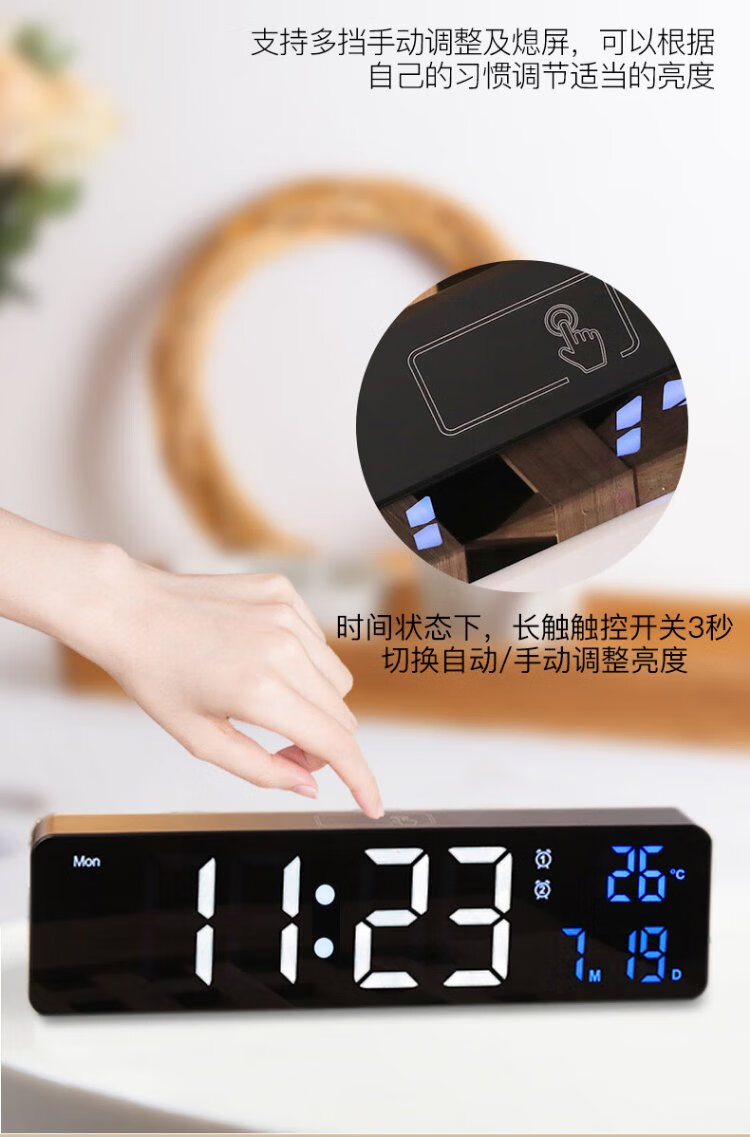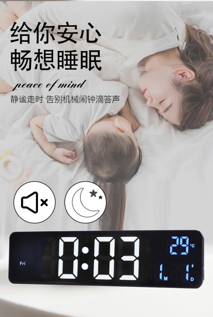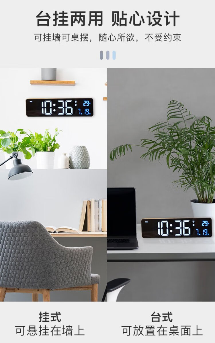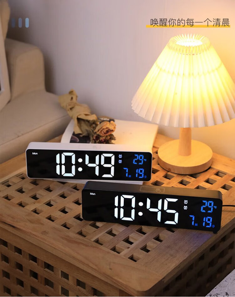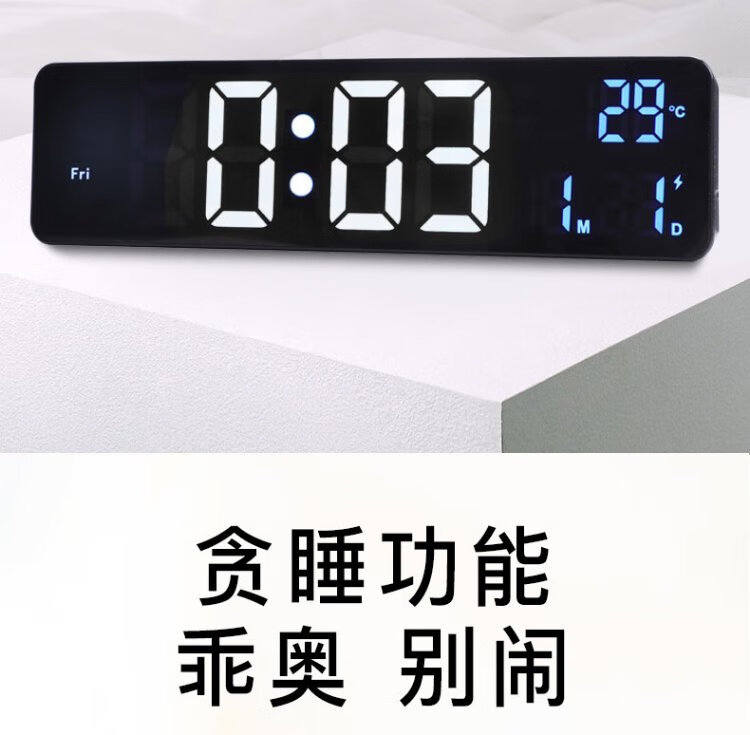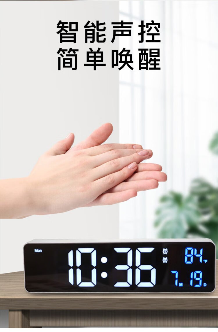 Hense LED electronic clock desktop multi-function digital alarm clock living room wall-mounted voice-controlled desk clock HA6625 white