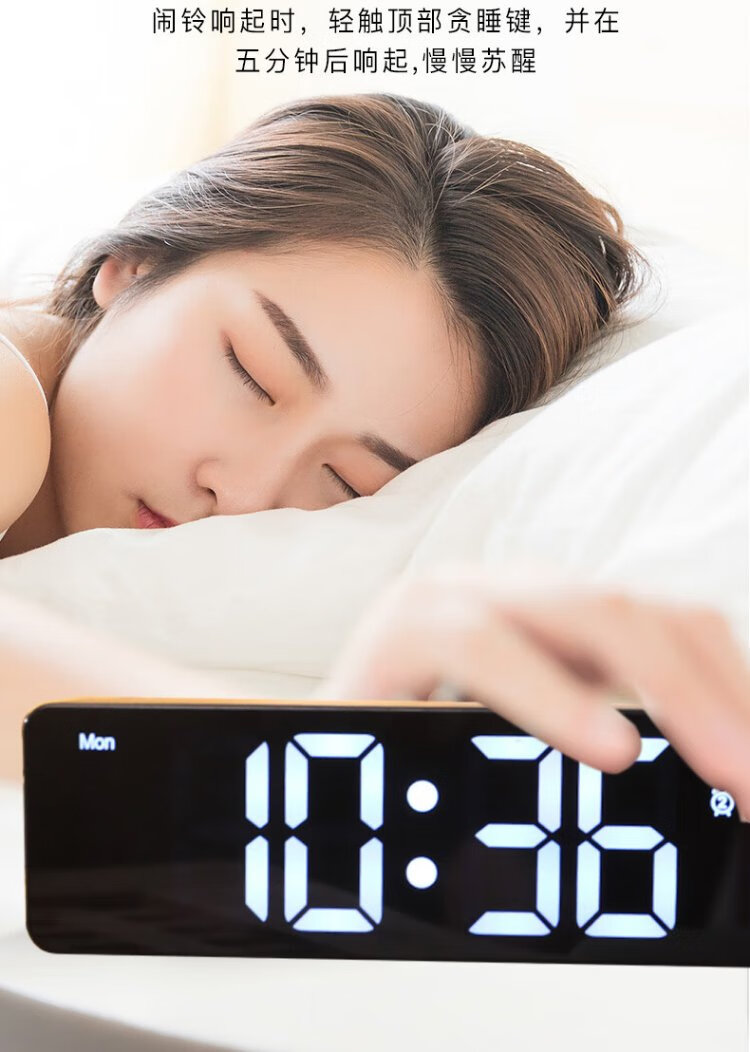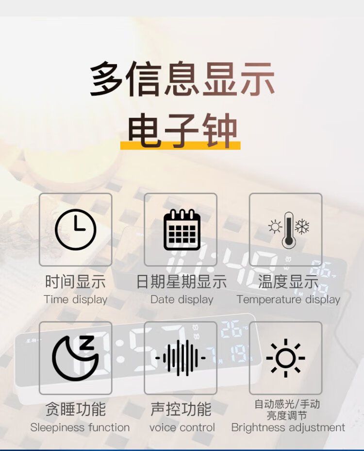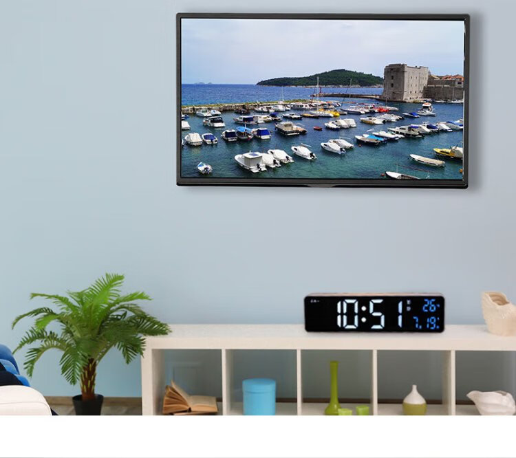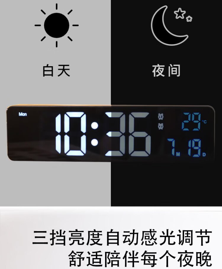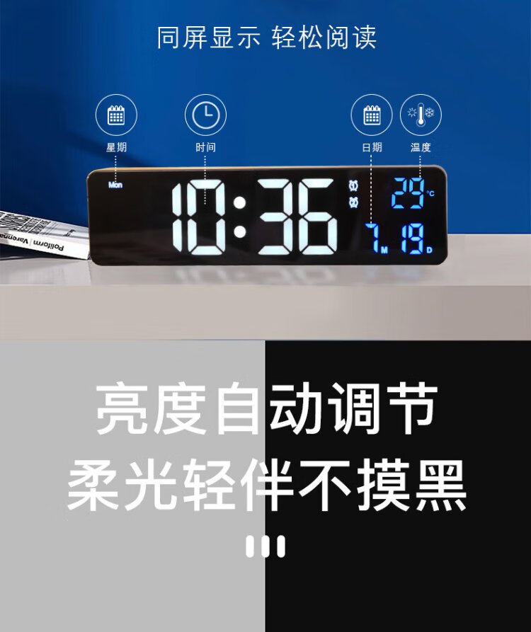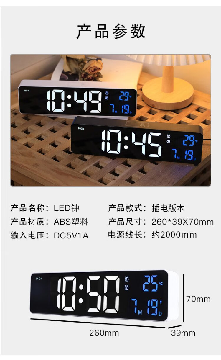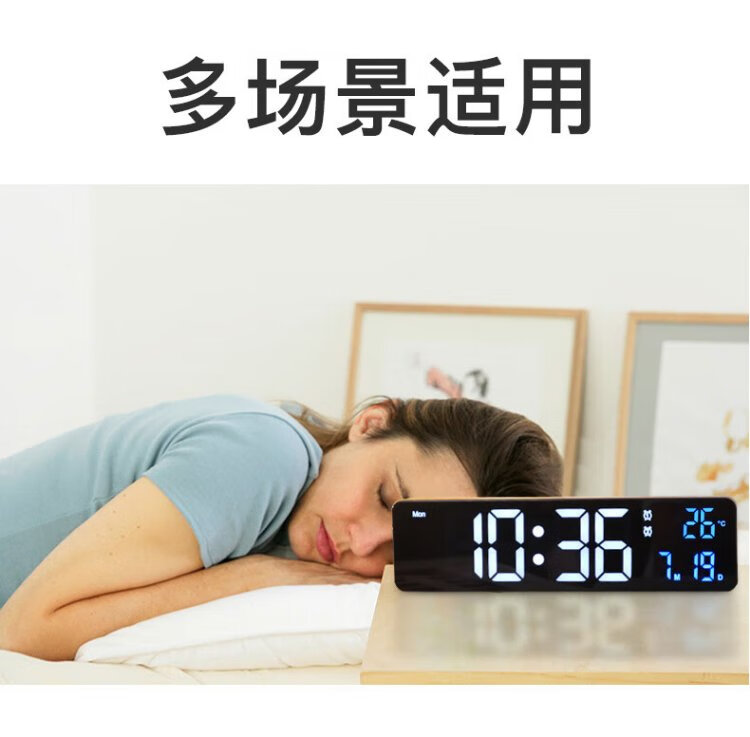 Hense LED electronic clock desktop multi-function digital alarm clock living room wall-mounted voice-controlled desk clock HA6625 white