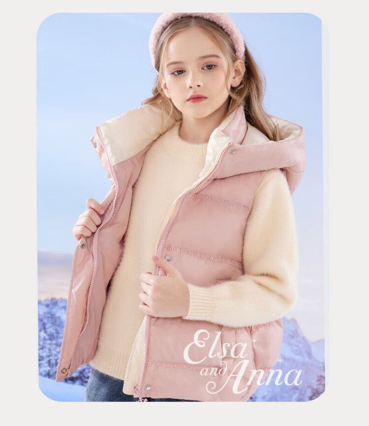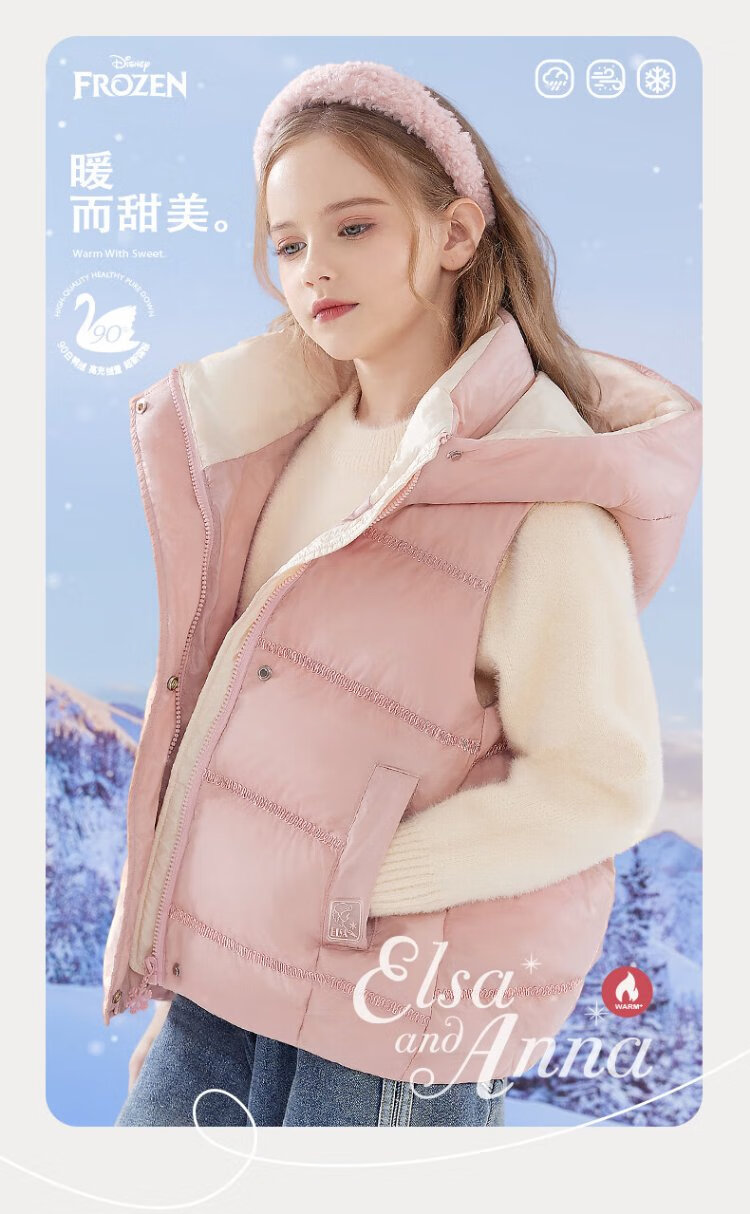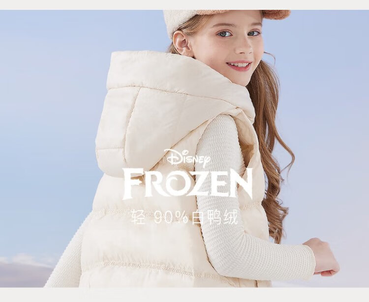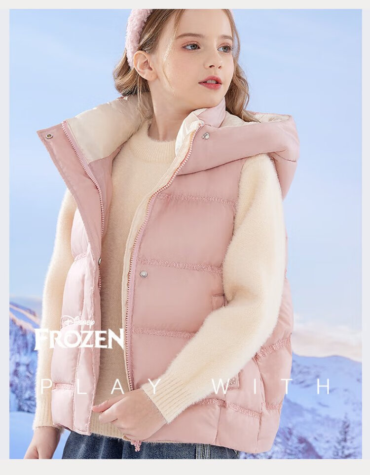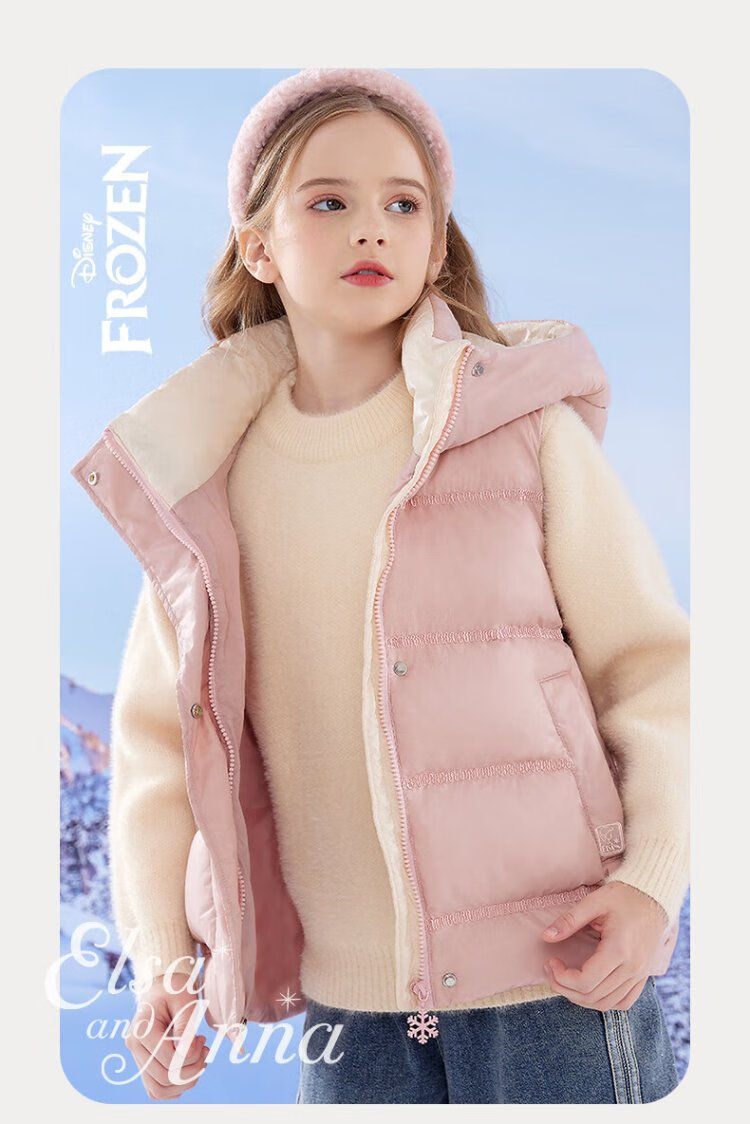 Disney girls' down vest autumn and winter white duck down children's vest outer wear for older children to keep warm 84243 camellia powder 140