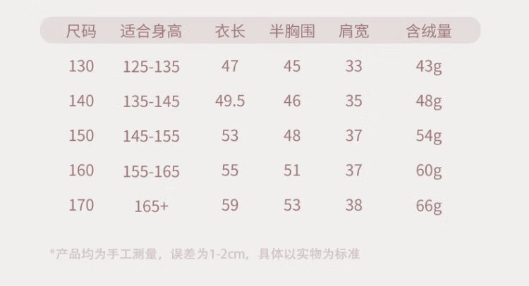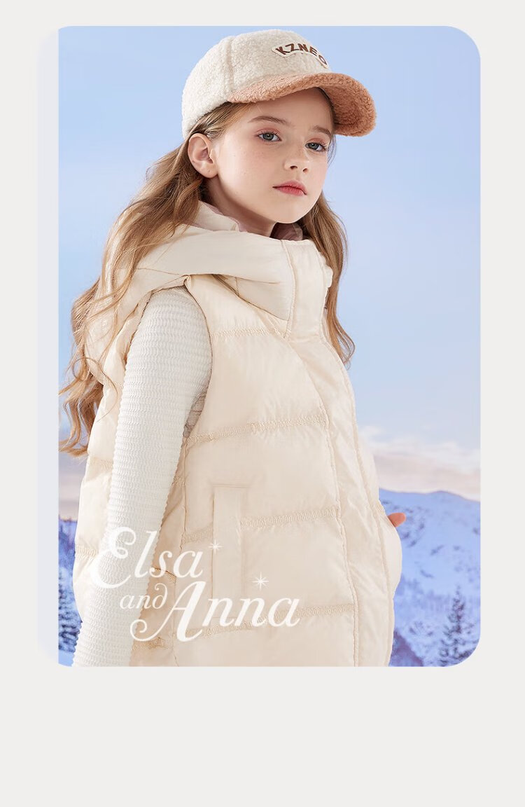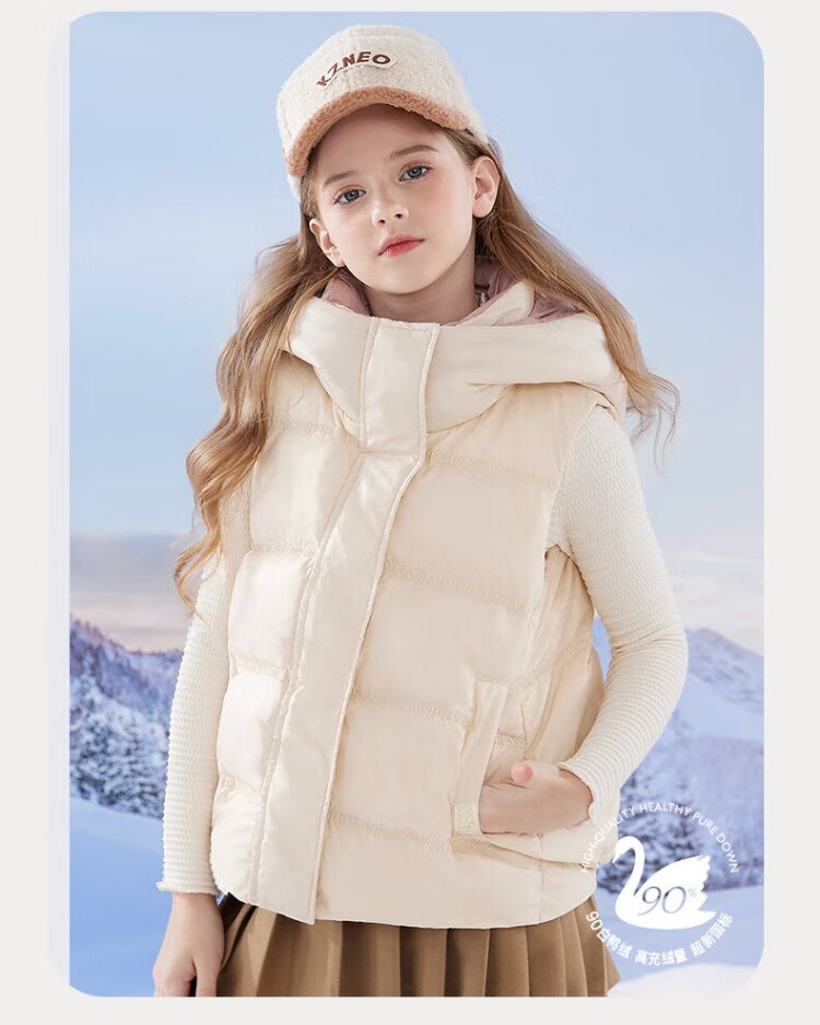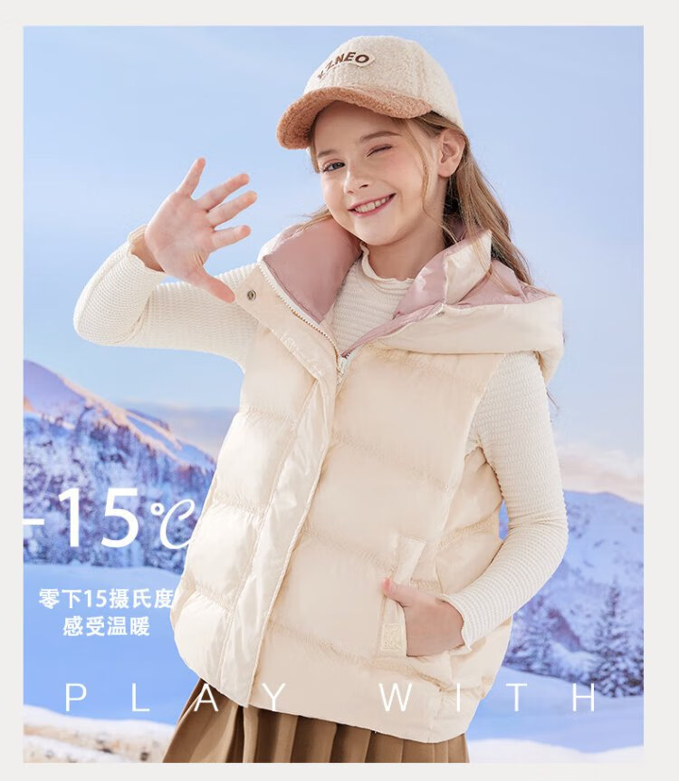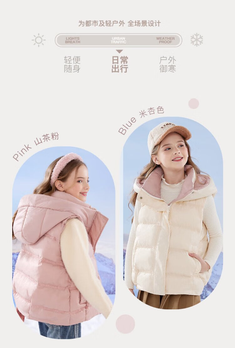 Disney girls' down vest autumn and winter white duck down children's vest outer wear for older children to keep warm 84243 camellia powder 140