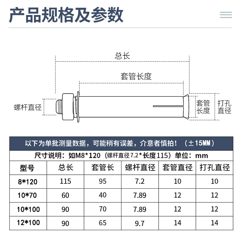 Platinum galvanized expansion screw bolt extension expansion tube nail outer tube expansion wire 8*120 (20 pcs)