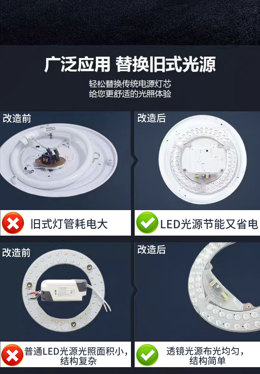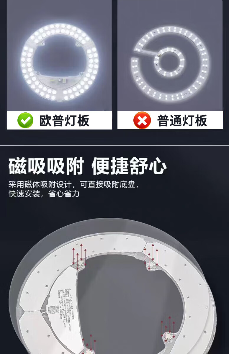 OPPLE LED Living Room and Bedroom Ceiling Lamp Wick 36w Three-tone Lighting Round Magnetic Modification Replacement Light Source Lamp Panel Module 1 Pack/