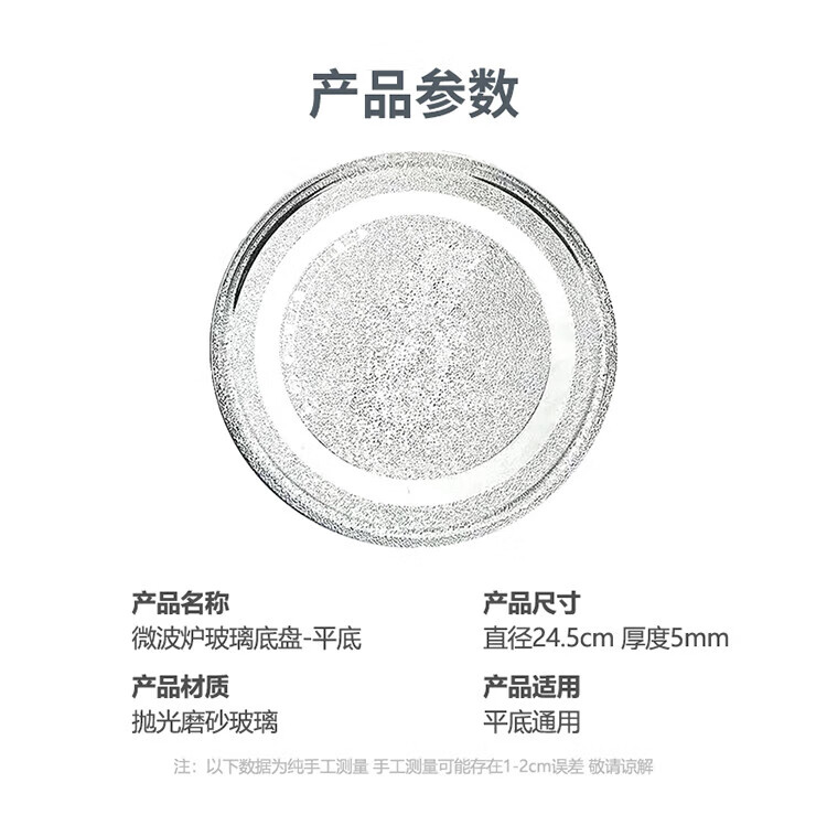 Shuangwei is suitable for Midea Galanz microwave oven glass turntable chassis with flat bottom, universal diameter 24.5cm WB-glass plate with flat bottom