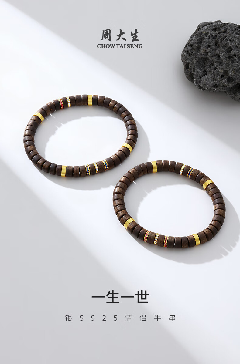 Chow Tai Sang agarwood cultured ruby bracelets for couples, lifelong bracelets for girlfriends, birthday gifts for boys