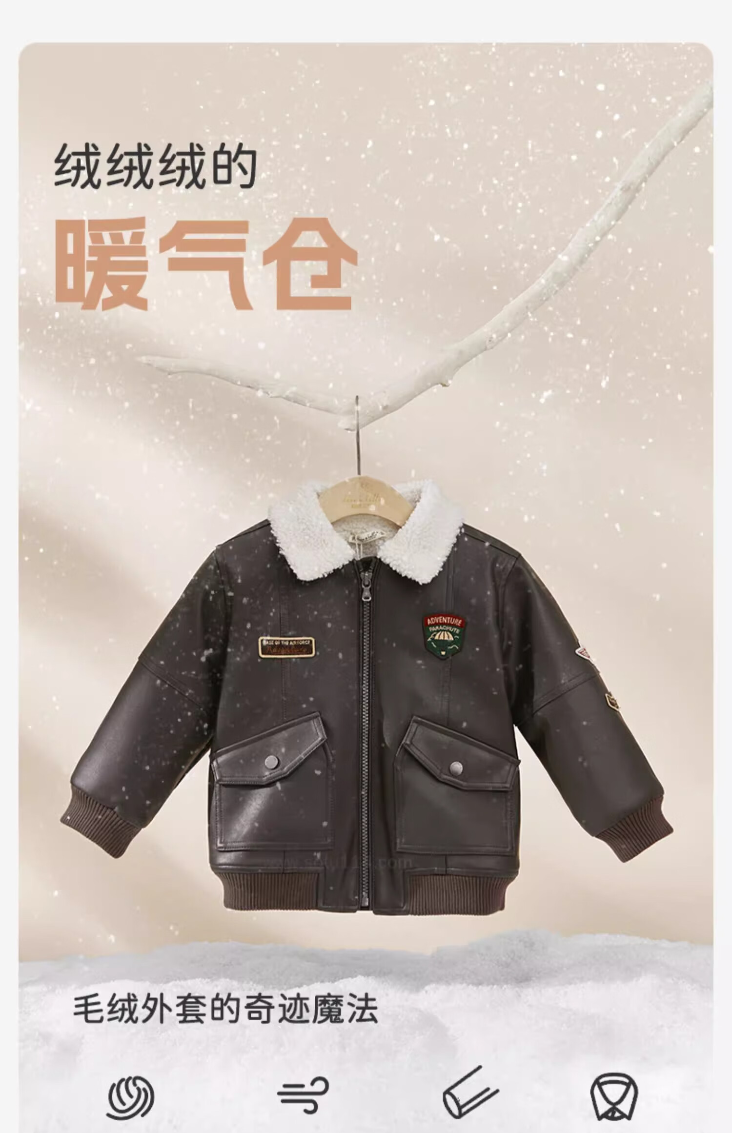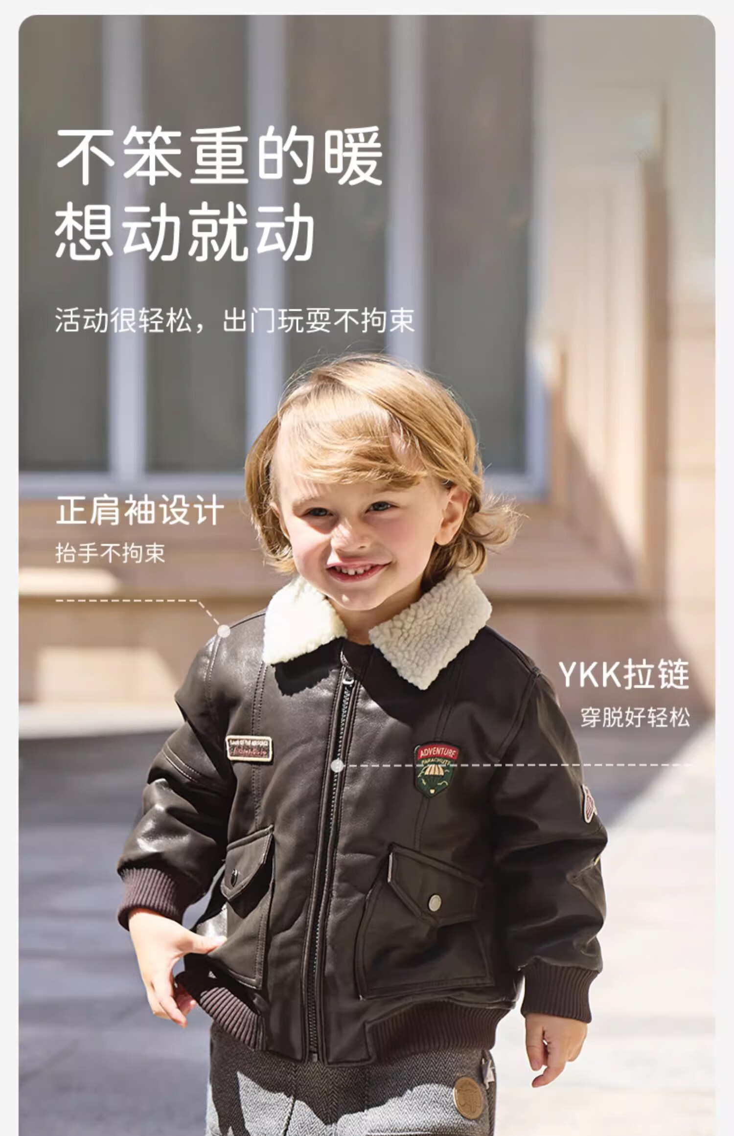 David Bella children's fleece jacket boy's winter jacket leather jacket baby bomber top