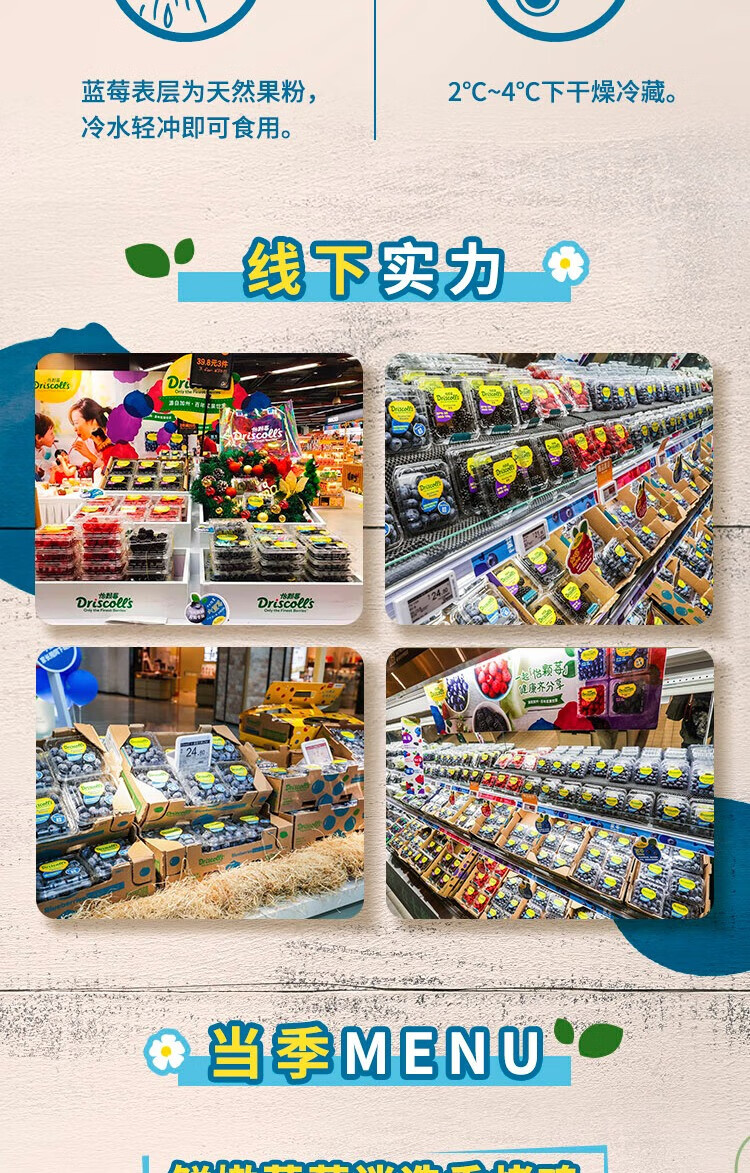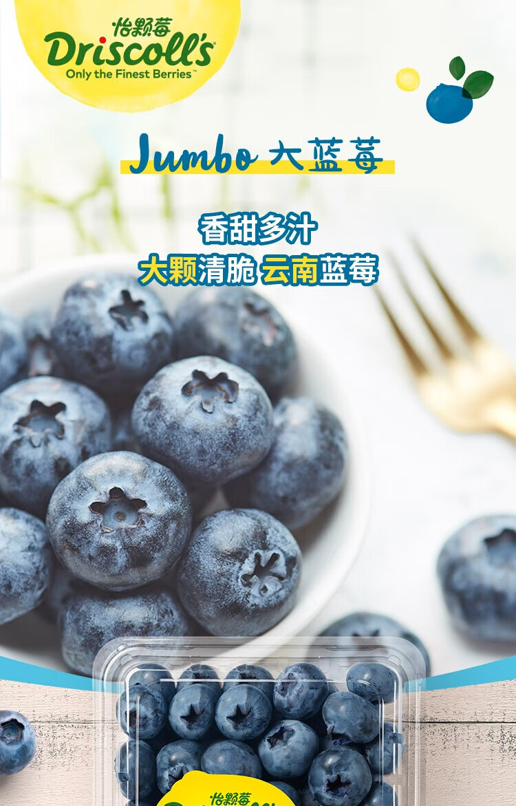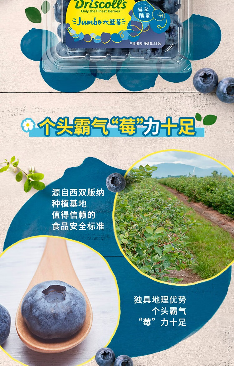 Driscoll s Yunnan blueberries 18mm+ 4 boxes, about 125g/box, fresh fruit, straight from the source