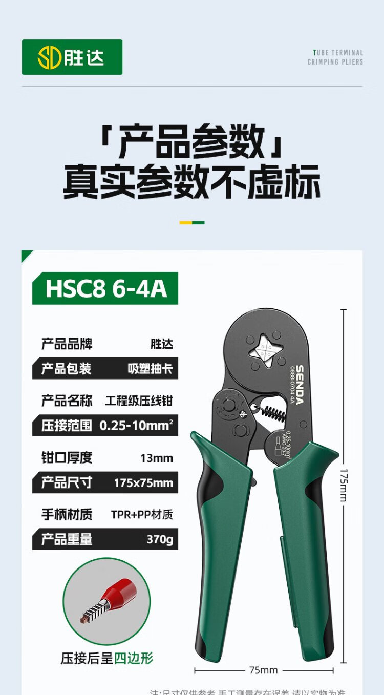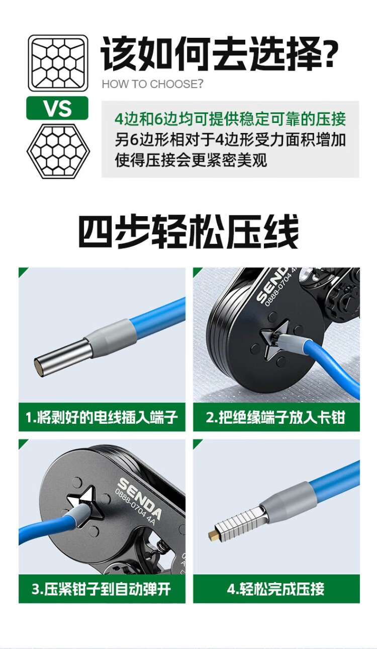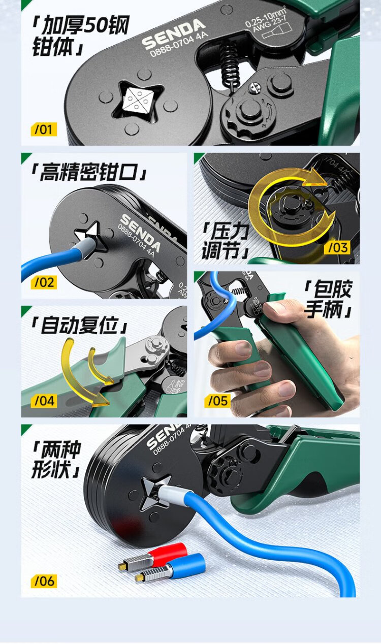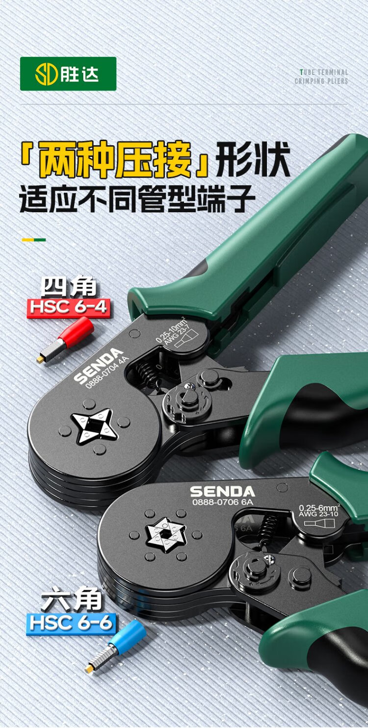 Shengda household crimping pliers cold-pressed terminal pliers bare terminal wiring pliers labor-saving ratchet self-adjusting terminal crimping pliers six-party