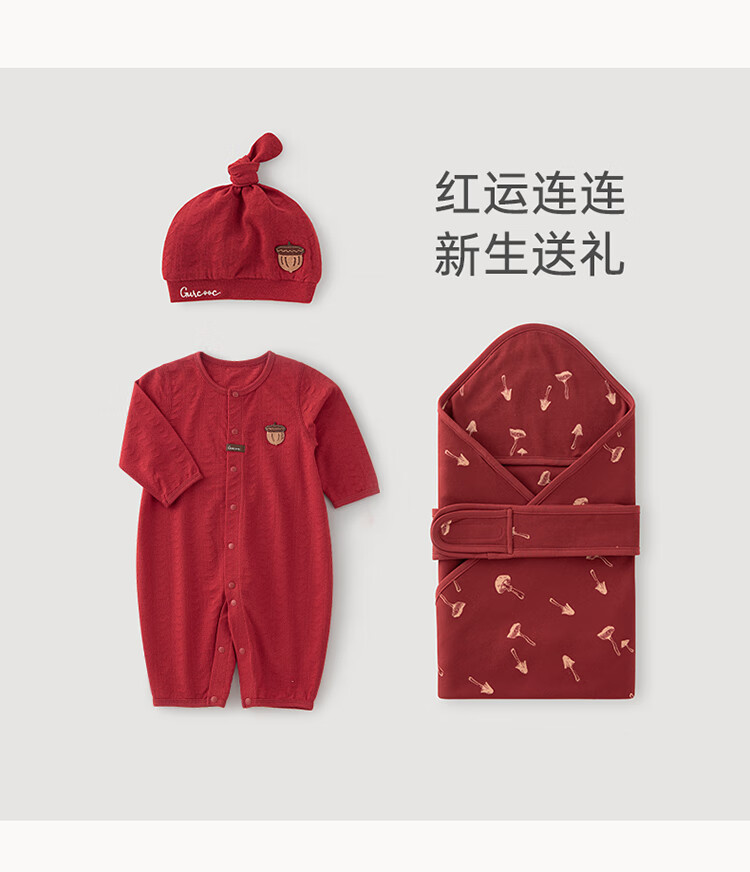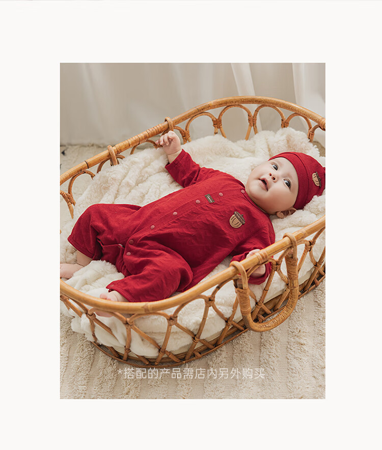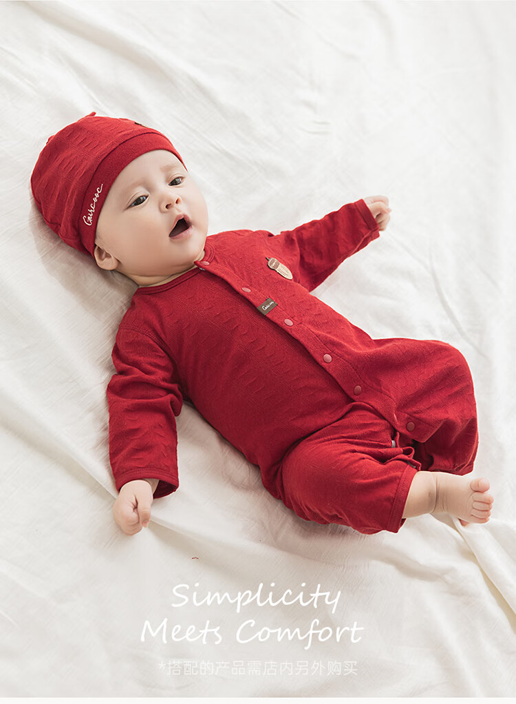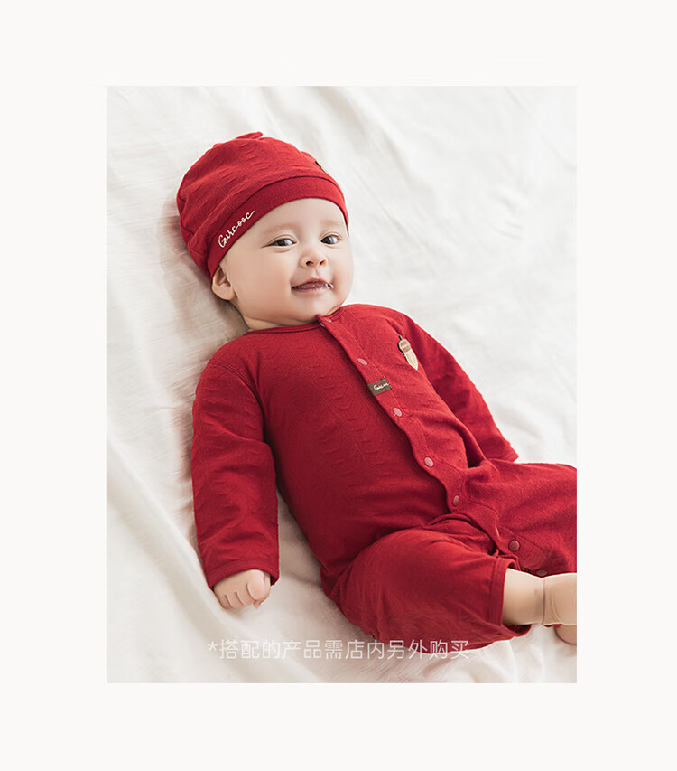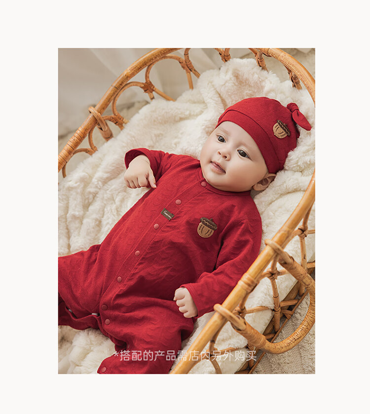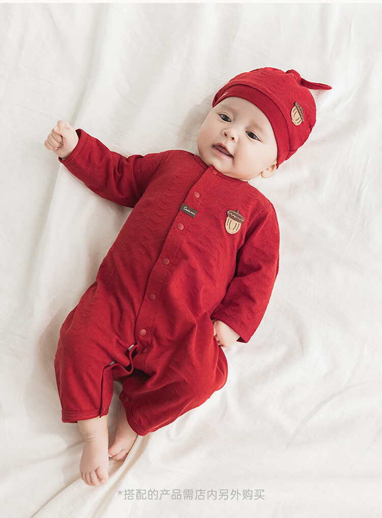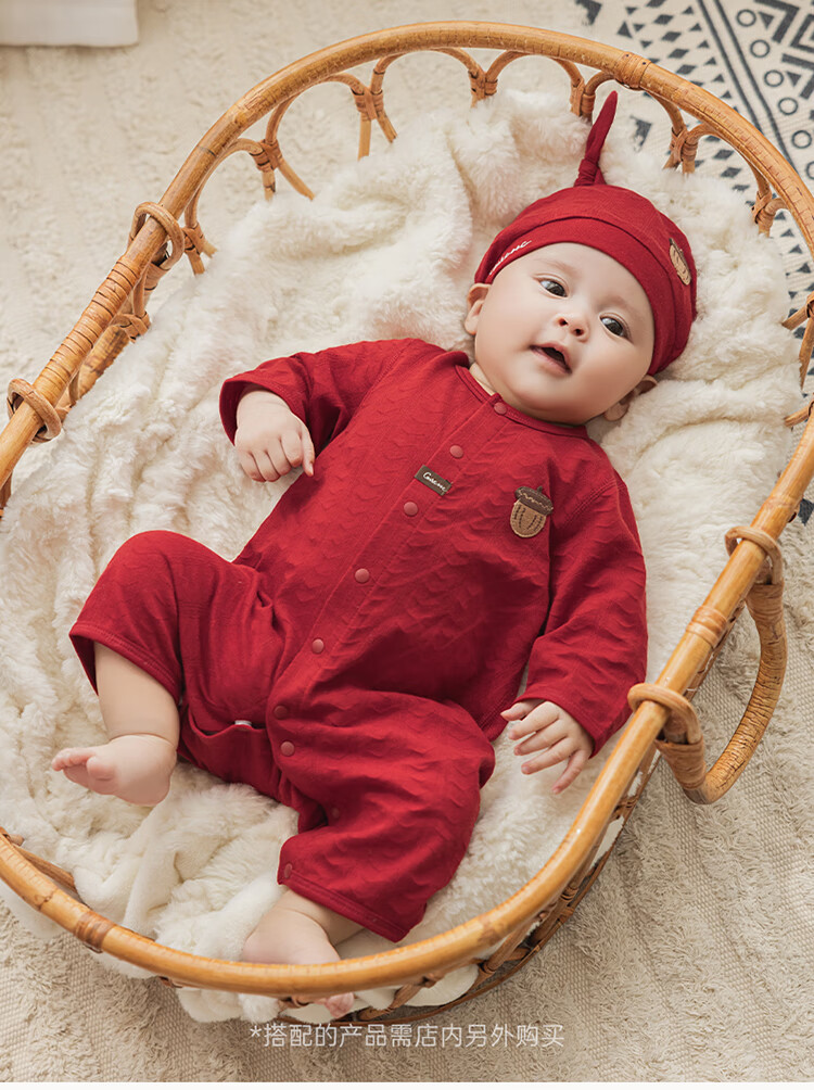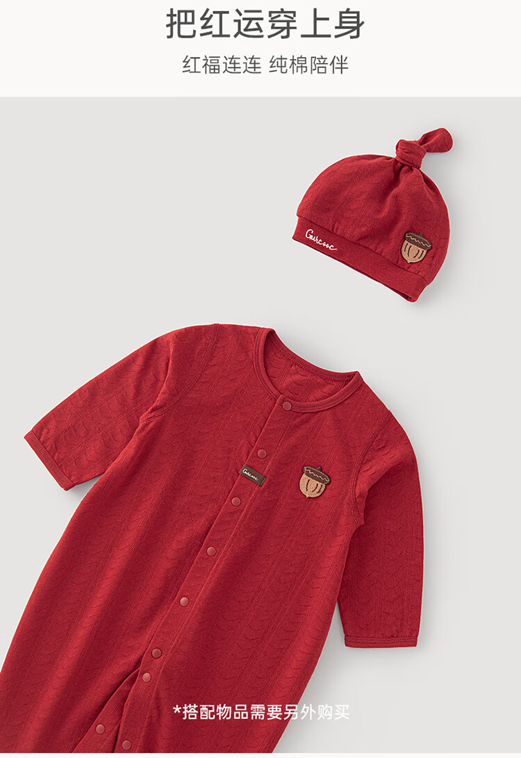 Guiqi Bear baby pure cotton jumpsuit summer thin red full moon one-year-old clothing baby air-conditioning clothing hayi crawling clothing spring and autumn