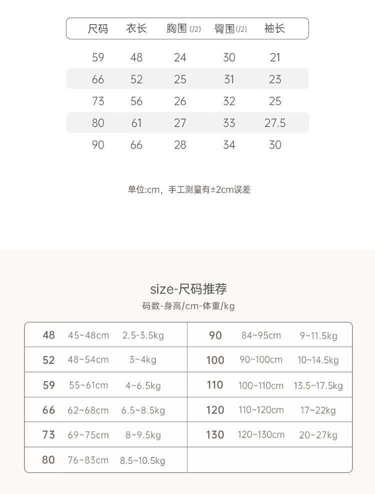 Size (cm) 42 44 46 48 50
