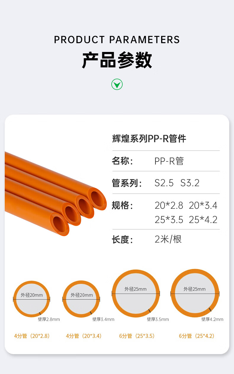Weixing PPR6 water distribution pipe 2 meters 1 piece dn25*en4.2 official original genuine home decoration hot and cold water universal pipes and pipes